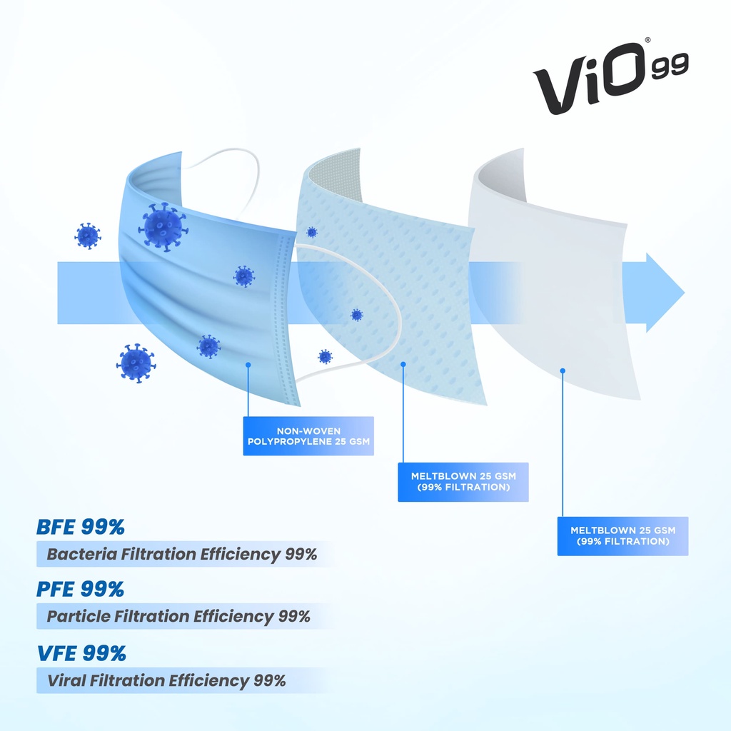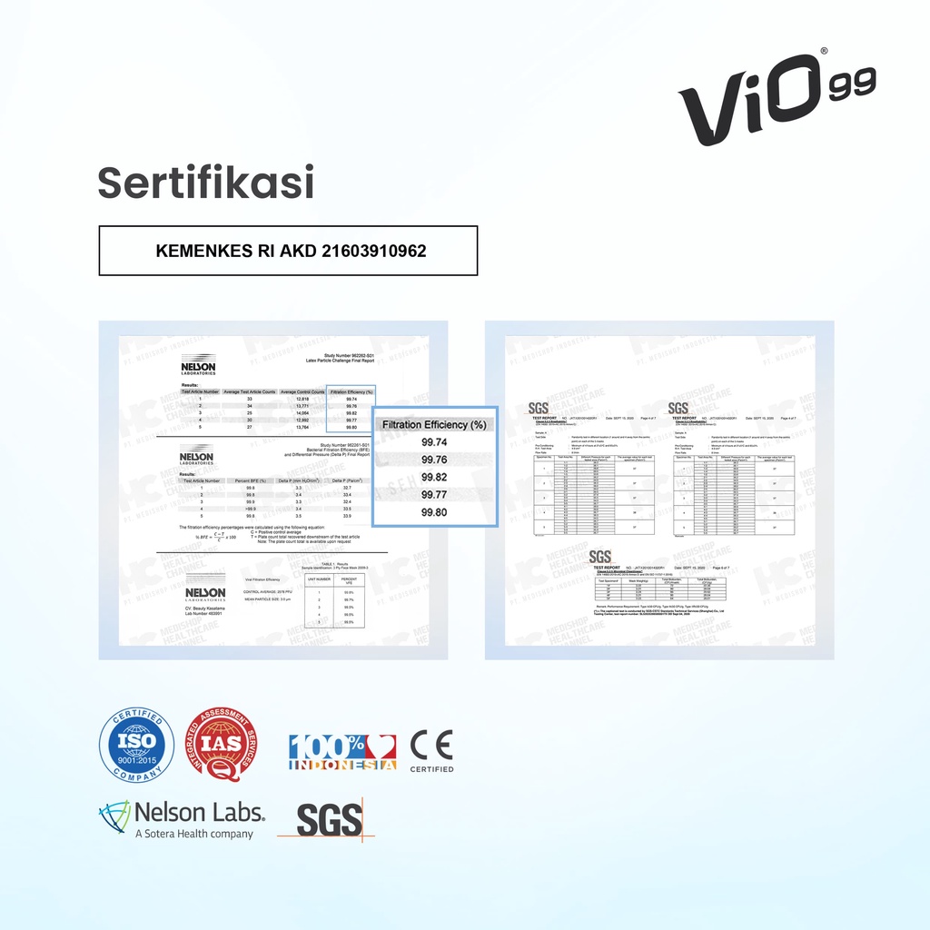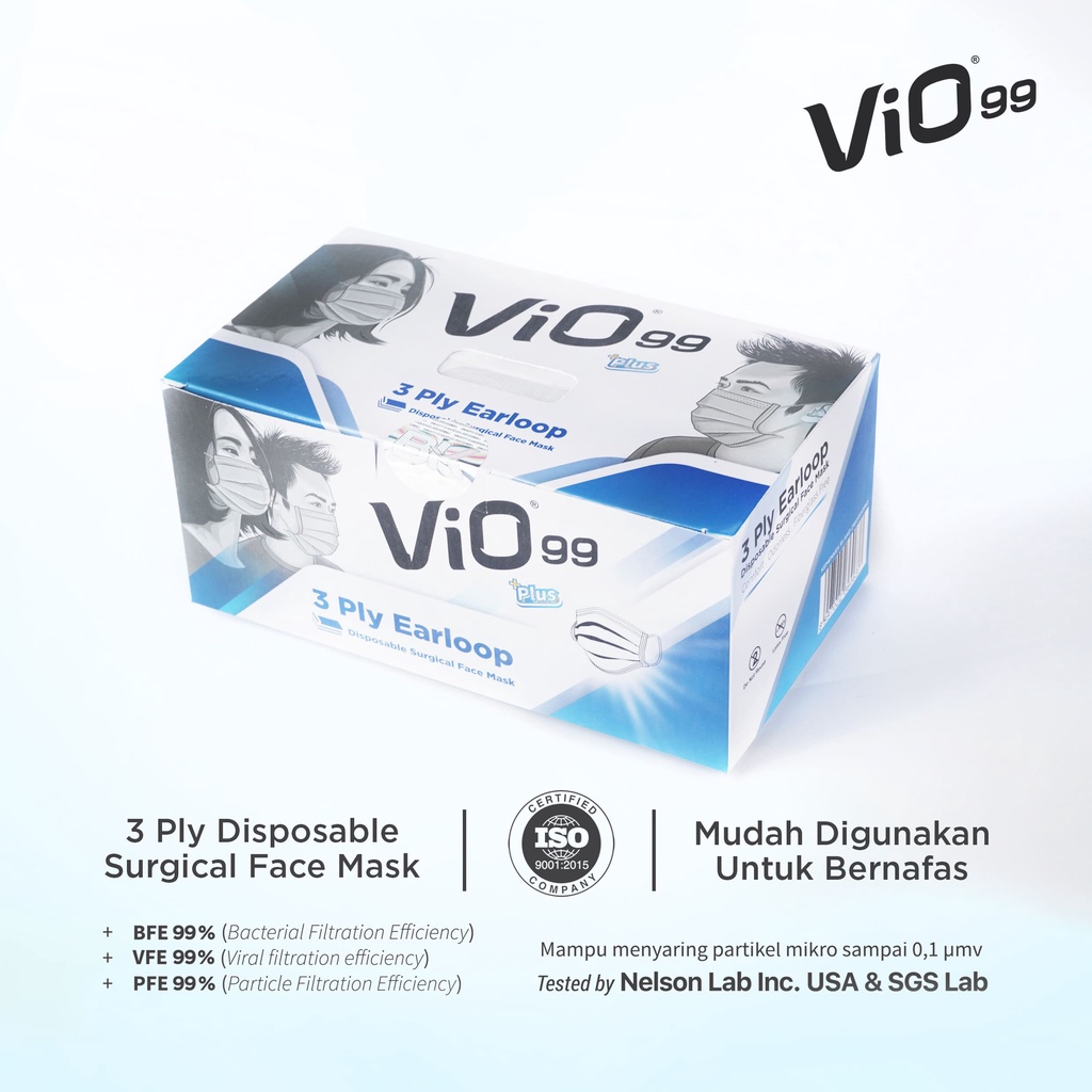 Vio Mask Earloop Black - Masker Vio 3 Ply Isi 50 Kesehatan Kualitas Premium Lulus Uji Bfe Pfe Vfe