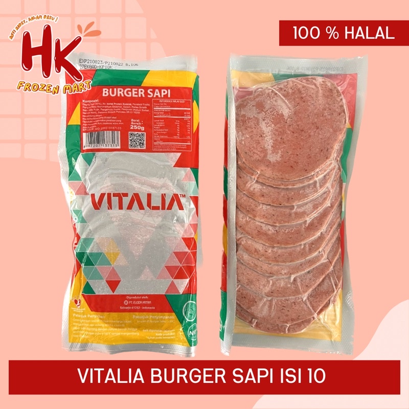 Vitalia isian Burger Sapi isi 20 & isi 10 lembar | smoked beef slice HK Frozen Mart