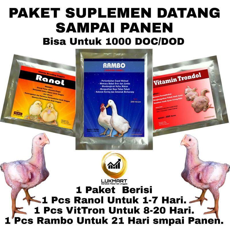 Vitamin Ayam - Penambah Nafsu Makan Ayam Broiler - 1 Pcs Ranol , 1 Pcs Vitamin Trondol -1 Pcs Rambo