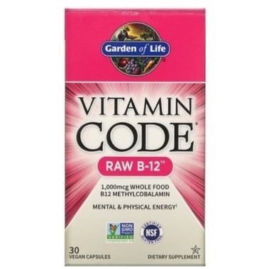 Vitamin Suplemen Code Raw B 12 B12 Methylcobalamin Garden Of Life with Probiotik & Enzim 30 Vcaps - Organik Pembentukan Sel Darah Merah