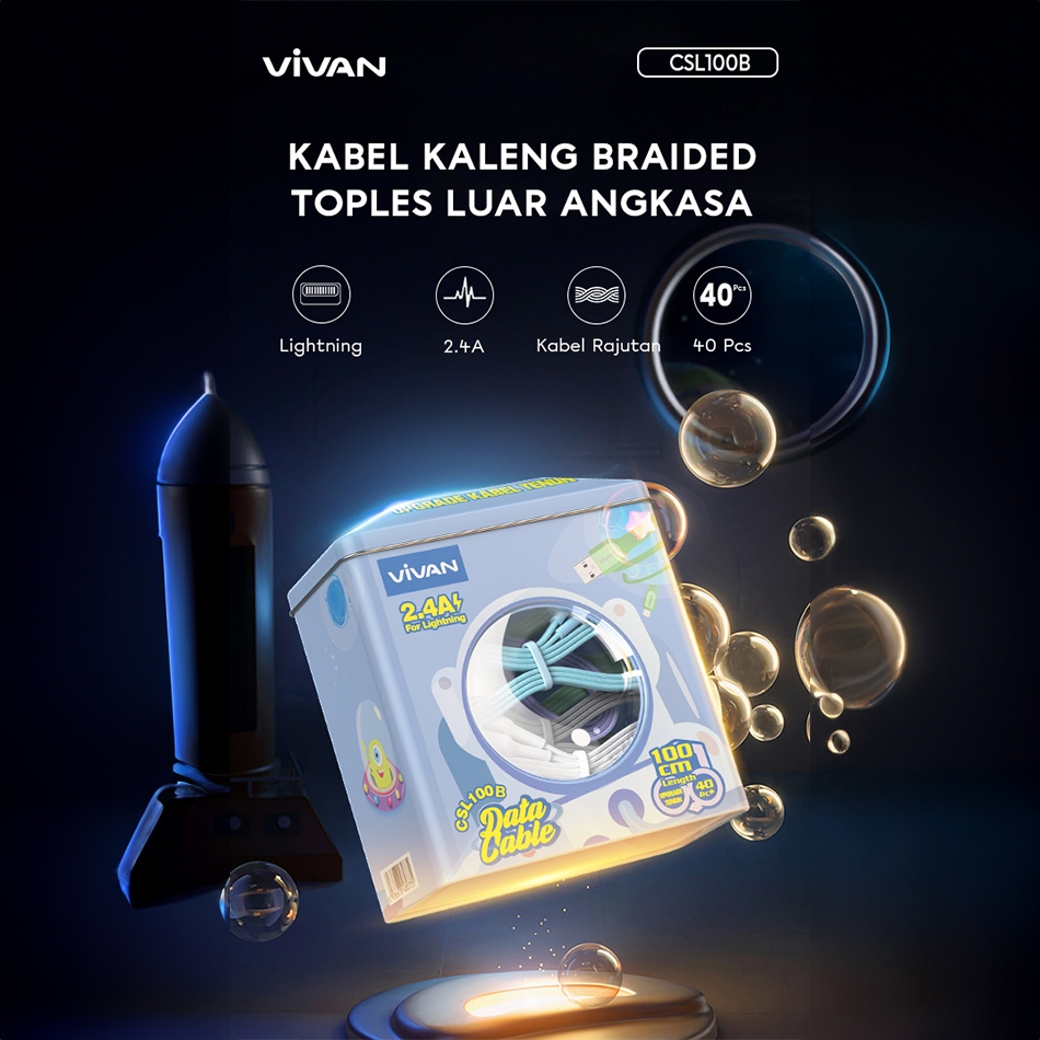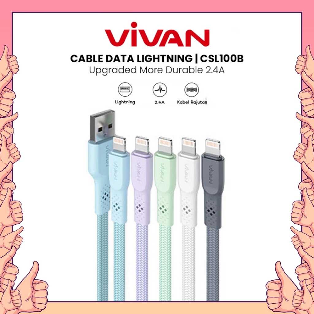 Vivan Kabel Data CSL100B USB Lightning Cable Data Iphone Braided Upgraded More Durable 2.4A 100CM