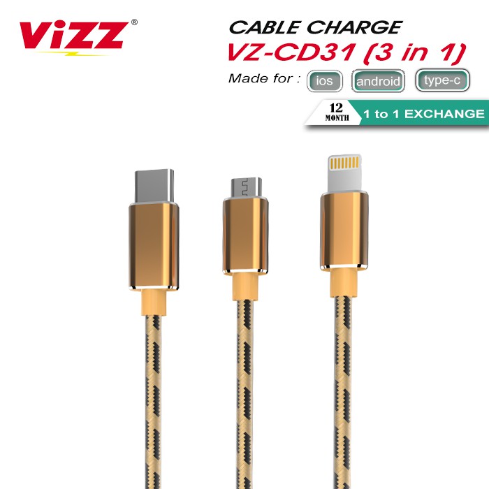Vizz KABEL DATA VZ-CD3 IN1 KABEL 3 FUNGSI MICRO IP TYPE C