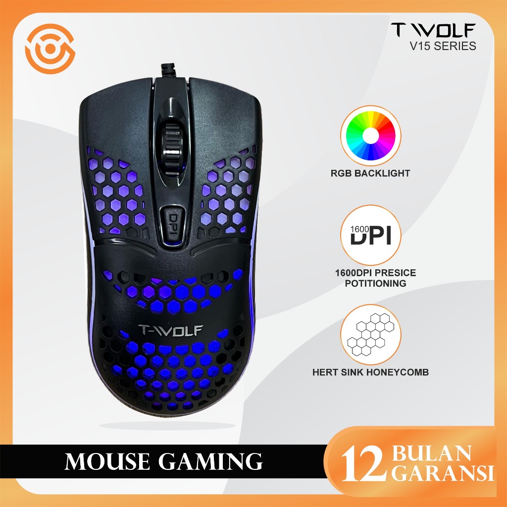 Voc Mouse Gaming T- WOLF V15 1600 DPI unik dan nyaman dipakai MOUSE COMPUTER