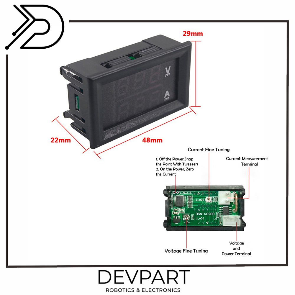 VoltMeter dan AmpereMeter Display Combo DC 0-100V 10A VoltAmpere Meter