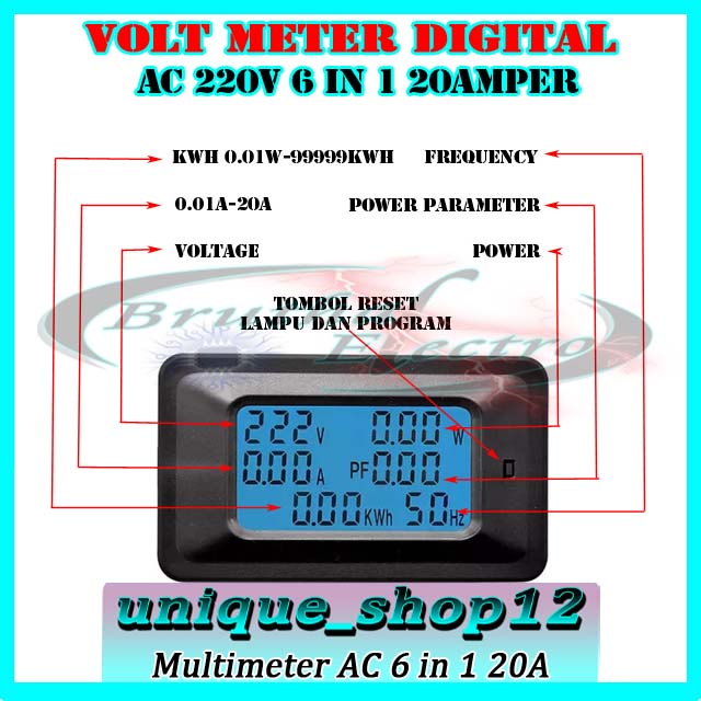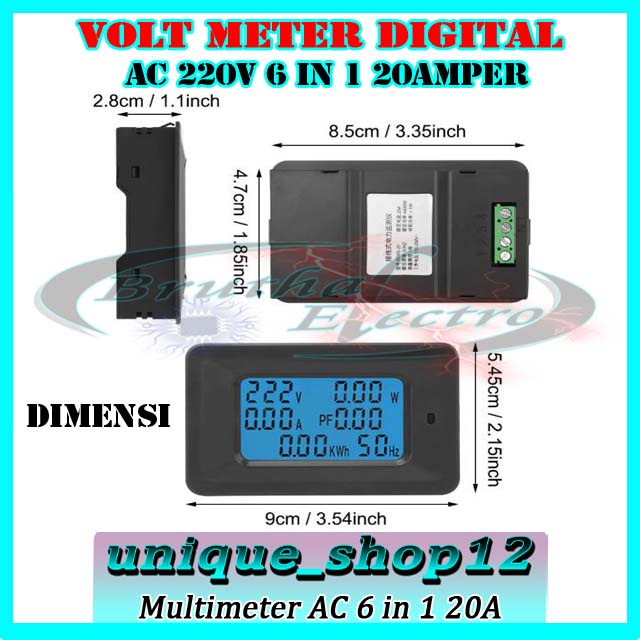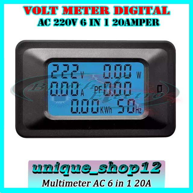 Voltmeter AC Watt Meter 110-250volt 20A Multimeter AC 6 Fungsi