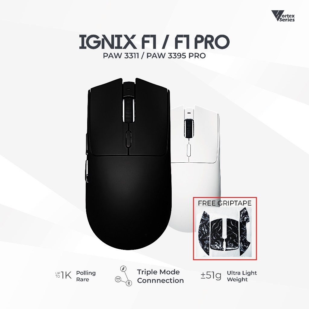 VortexSeries IGNIX Series | Ultra Light Wireless Tri Mode Gaming Mouse PixArt PAW 3311 / 3395 PRO