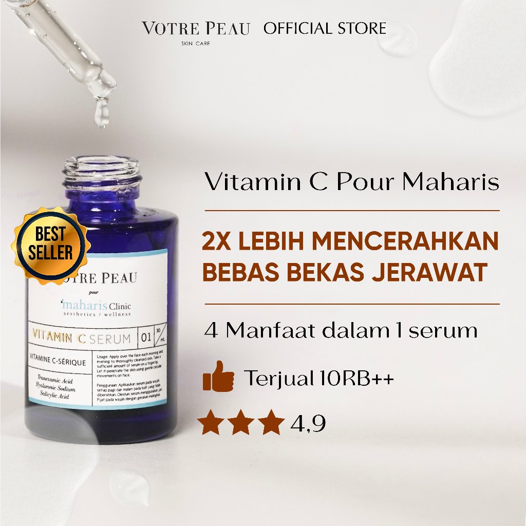 Votre Peau Vitamin C Serum Pour Maharis Clinic 30ml - Serum Anti Aging menghilangkan bekas jerawat