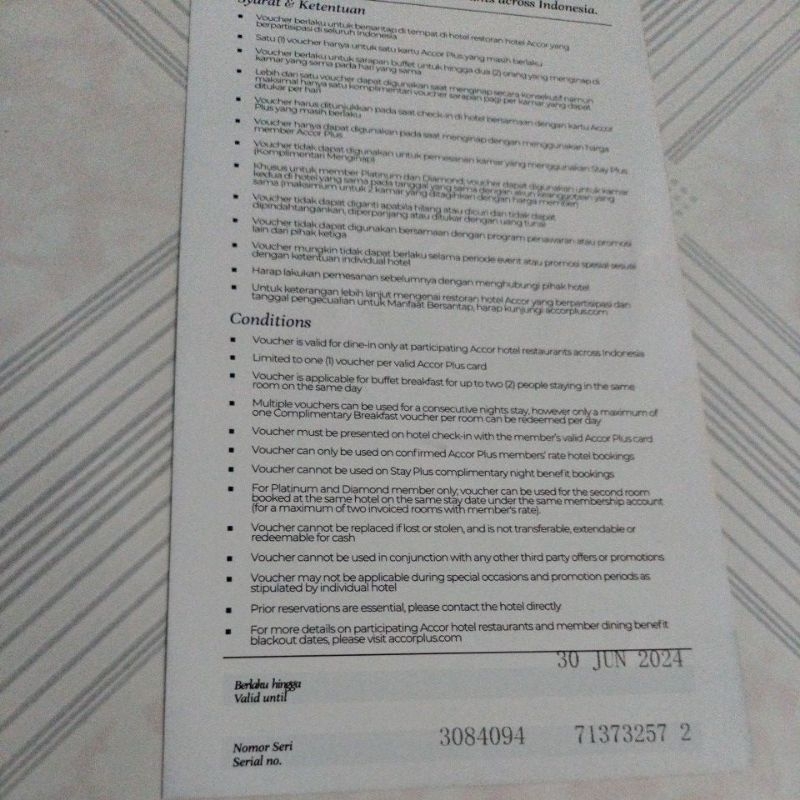 Voucher Accor Plus Komplimentari breakfast buffet Voucher Accor breakfast sarapan pagi Voucher Accor Grup