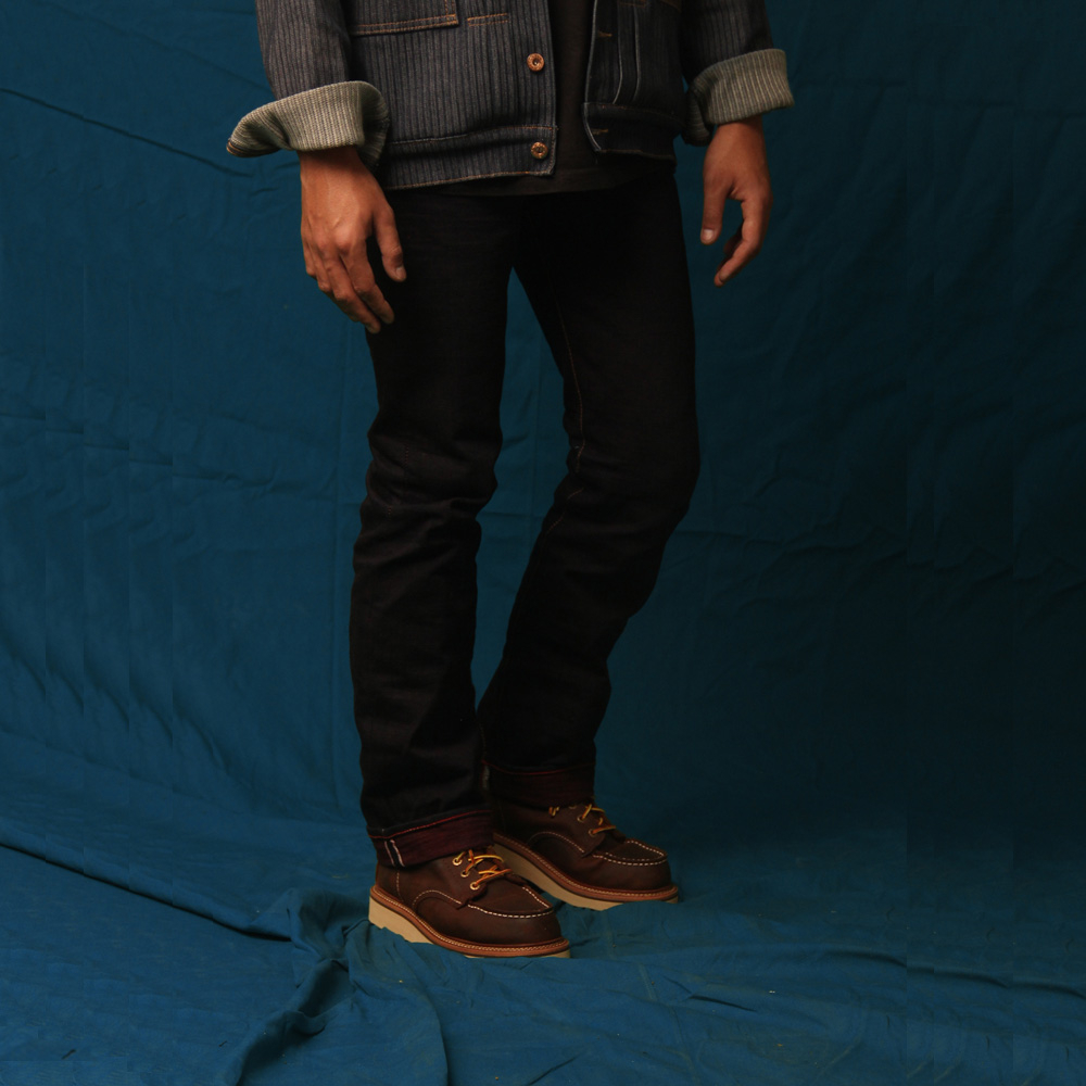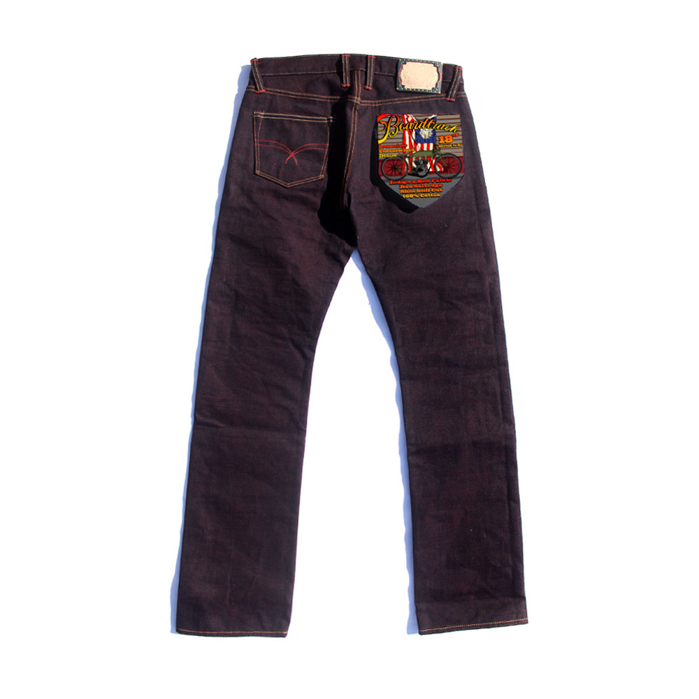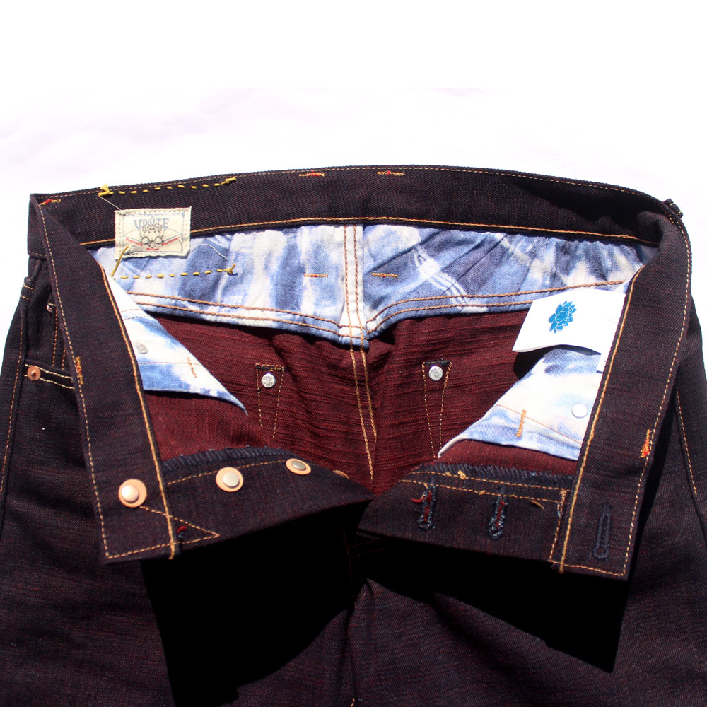 Voute Denim - Boardtrack Jeans 18oz Indigo x Maroon Unsanforized Selvedge Heavy Weight Raw Denim Deep Blue Indigo Jeans Celana Panjang Men Pria Long Pants Unsanfor Sanforized Slim Tapered Straight Reguler Pant Blue Black