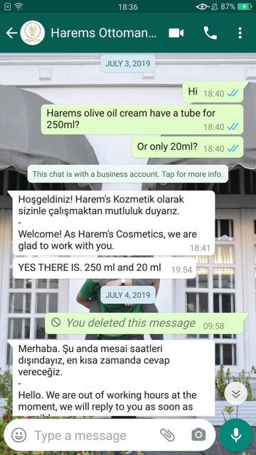 (READY STOCK) Harems's Olive Oil 250ml-ORI FROM TURKEY-MOISTURIZING CREAM