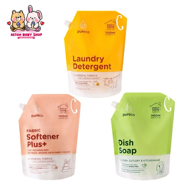 Pureco Daily Home Series Dish Soap / Detergent / Softener Plus - Pureco Detergen/ Sabun Cuci Piring / Pelembut Pakaian