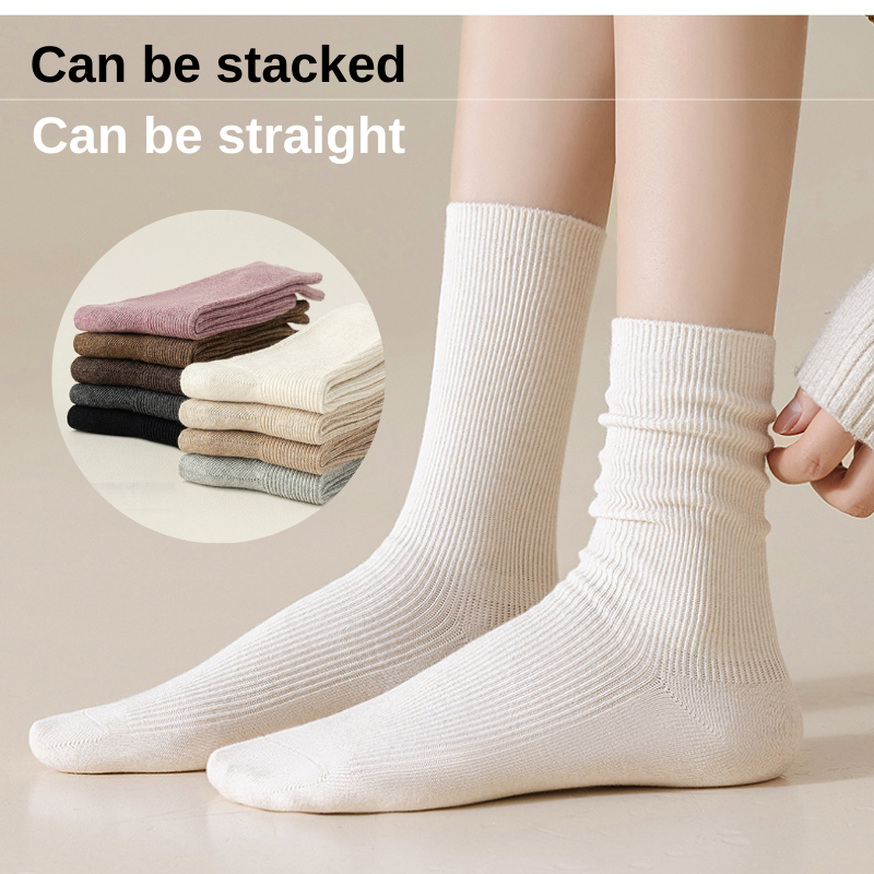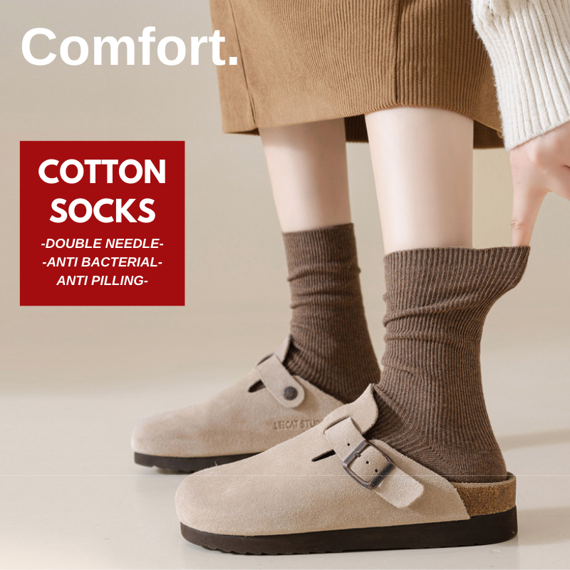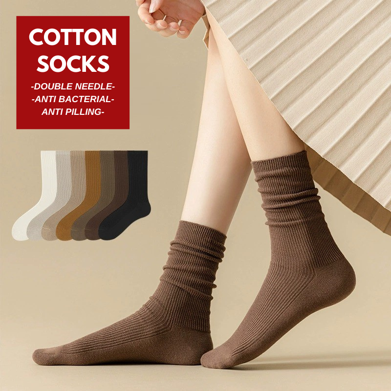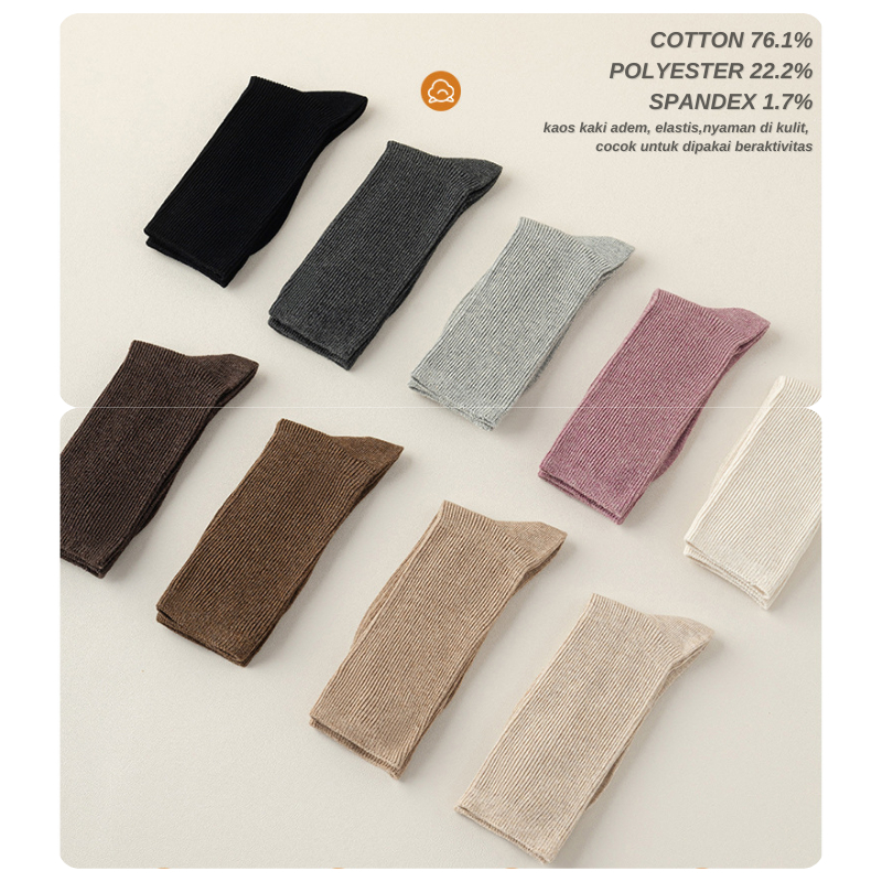 W22236 Kaos Kaki Tinggi bahan Katun Kaus Kaki Wanita Kerja Kasual Cewek Abg Polos Panjang Sebetis Premium