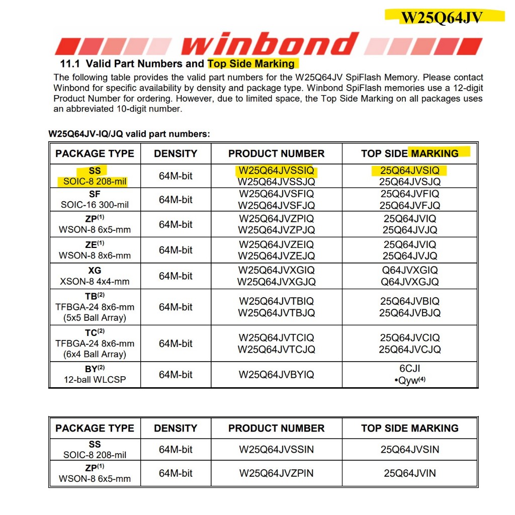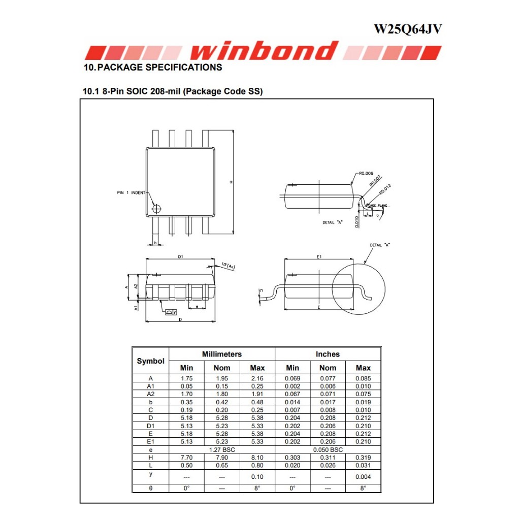 W25Q64JV 3V 64M-bit Serial Flash Memory with Uniform 4KB Sectors and Dual/Quad SPI W25Q64 25Q64JVSIQ SOIC-8 Winbond ORIGINAL