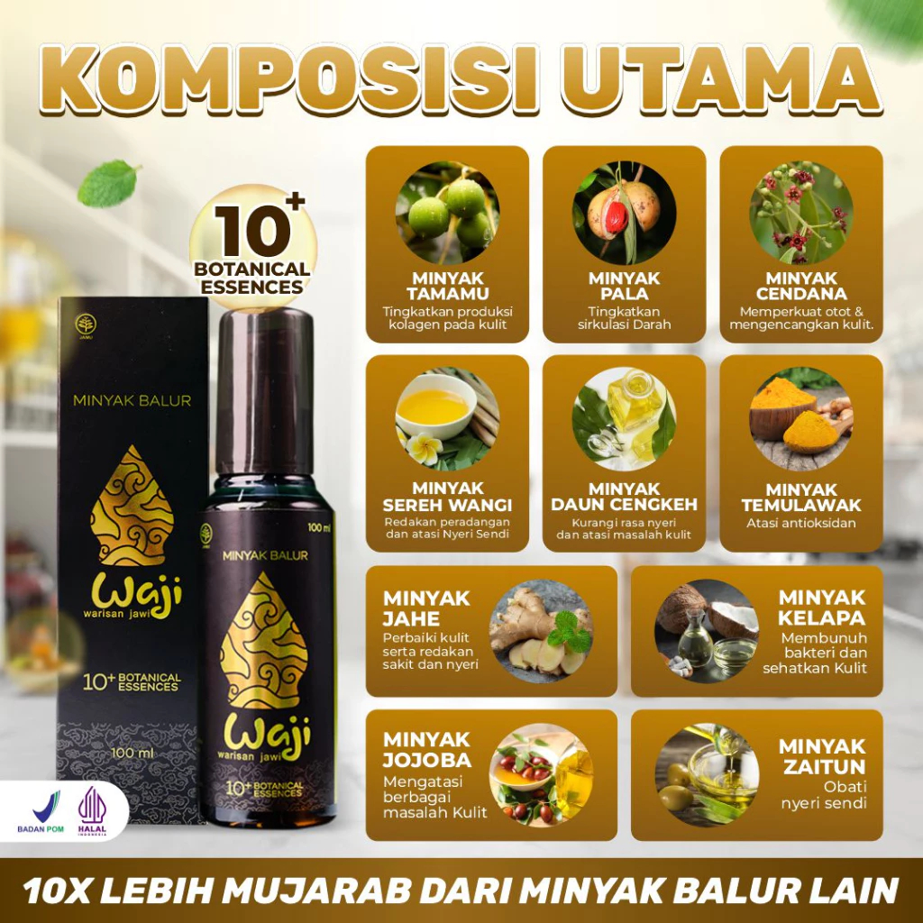 WAJI Minyak Balur Herbal 2 Botol untuk Mengatasi Gatal Scabies Kudis Eksim Kurap Panu Biduran Nyeri Pegal Pegal dan Masuk Angin Asli Original