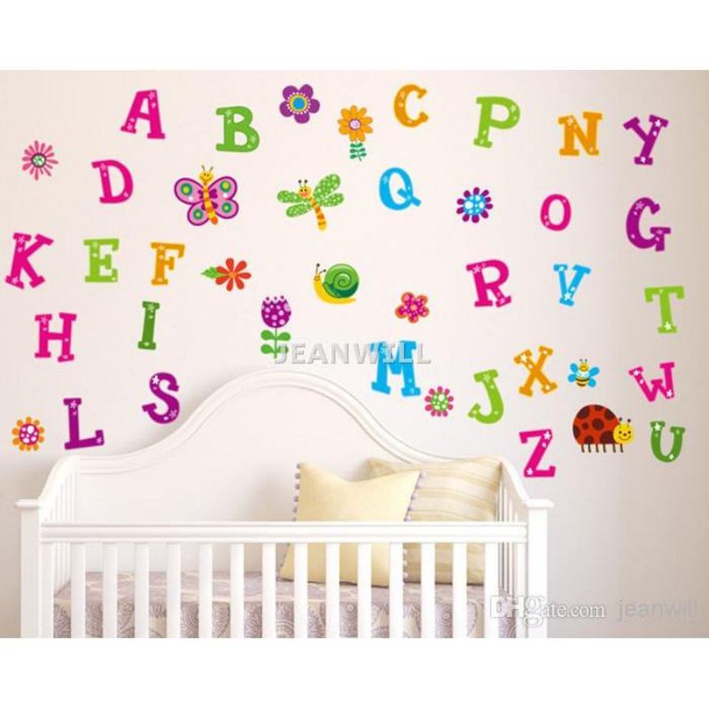 WALL STICKER STIKER DEKORASI TEMPEL DINDING UNTUK INTERIOR KAMAR ANAK DAN BAYI ANGKA DAN HURUF ABJAD COLOR