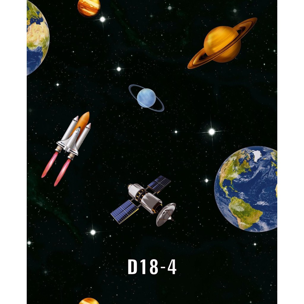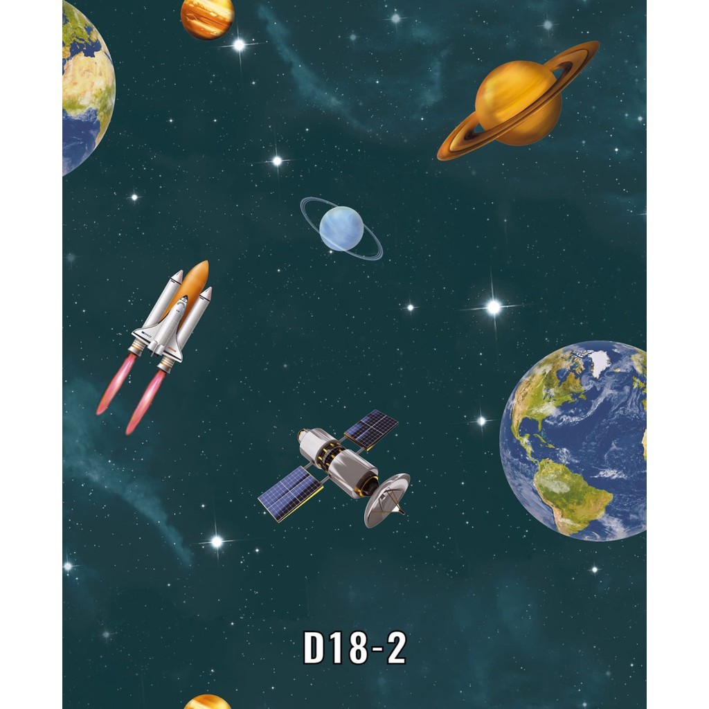 WALLPAPER DINDING ANAK MOTIF PLANET LUAR ANGKASA BINTANG LANGIT BIRU