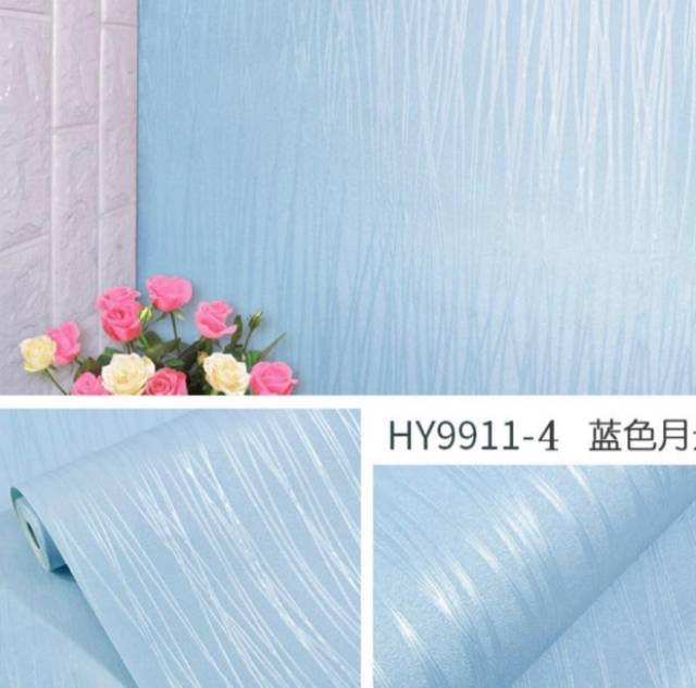 WALLPAPER WALLSTICKER MOTIF EMBOS SERAT POLOS BIRU