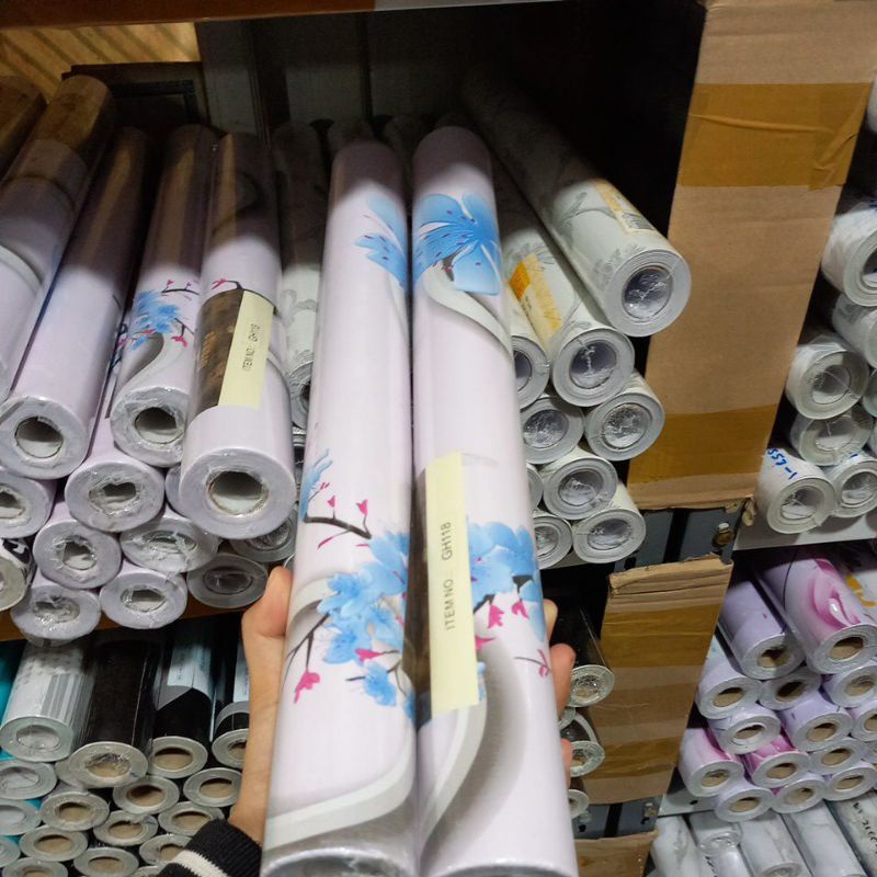 WALLPAPER STICKER MOTIF BUNGA PINK BULAT