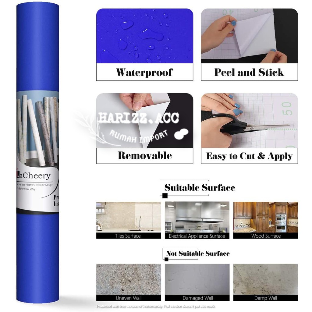 WALLPAPER STIKER DINDING BIRU PEKAT POLOS BERTEKSTUR 45CM X4M