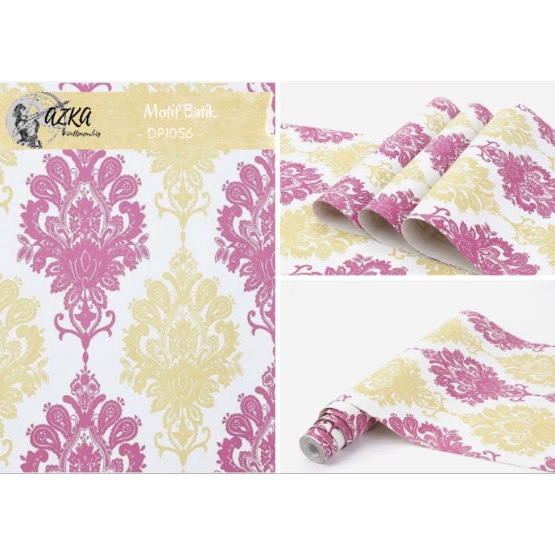WALLPAPER STIKER PREMIUM 45CM X 10M MOTIF BATIK GOLD PINK PUTIH