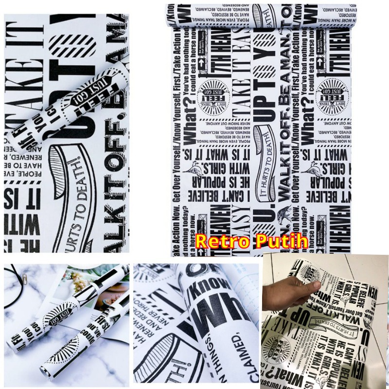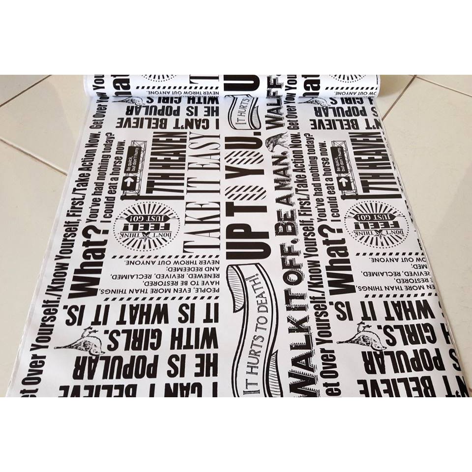 WALLPAPER STIKER STICKER DINDING TEMBOK KAMAR CAFE CAFEE RETRO 680 KORAN MAJALAH HITAM PUTIH