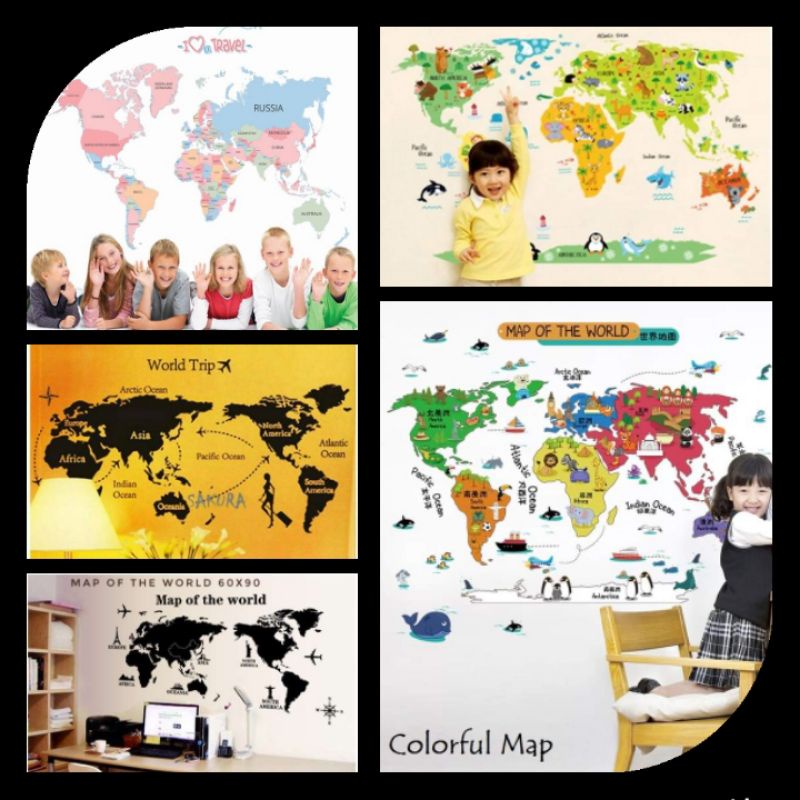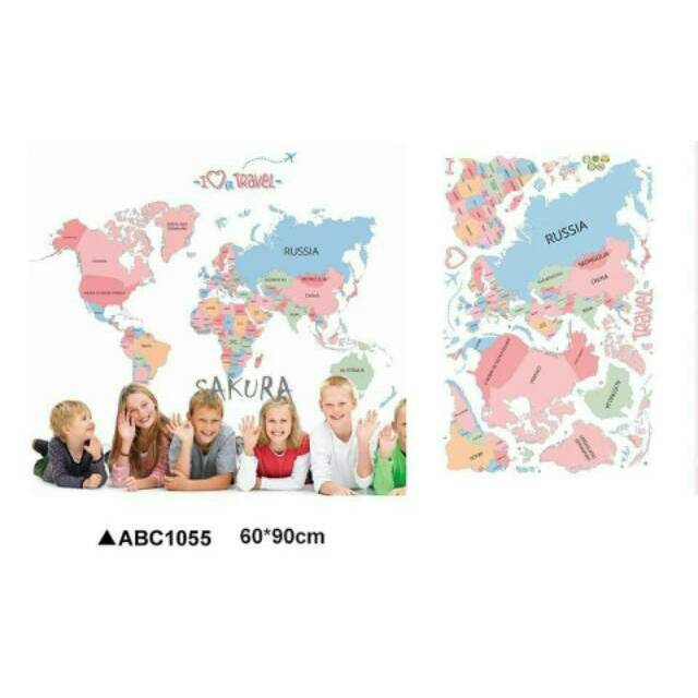 WALLSTICKER 60x90 peta pink, peta ijo, peta warna, peta hitam