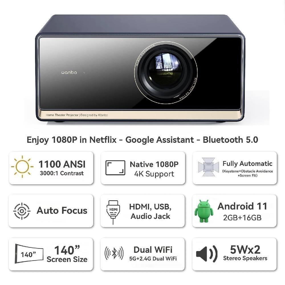 WANBO X5 PRO - Smart Android Projector 1100 ANSI Lumens - WANBO X5 Upgrade Version
