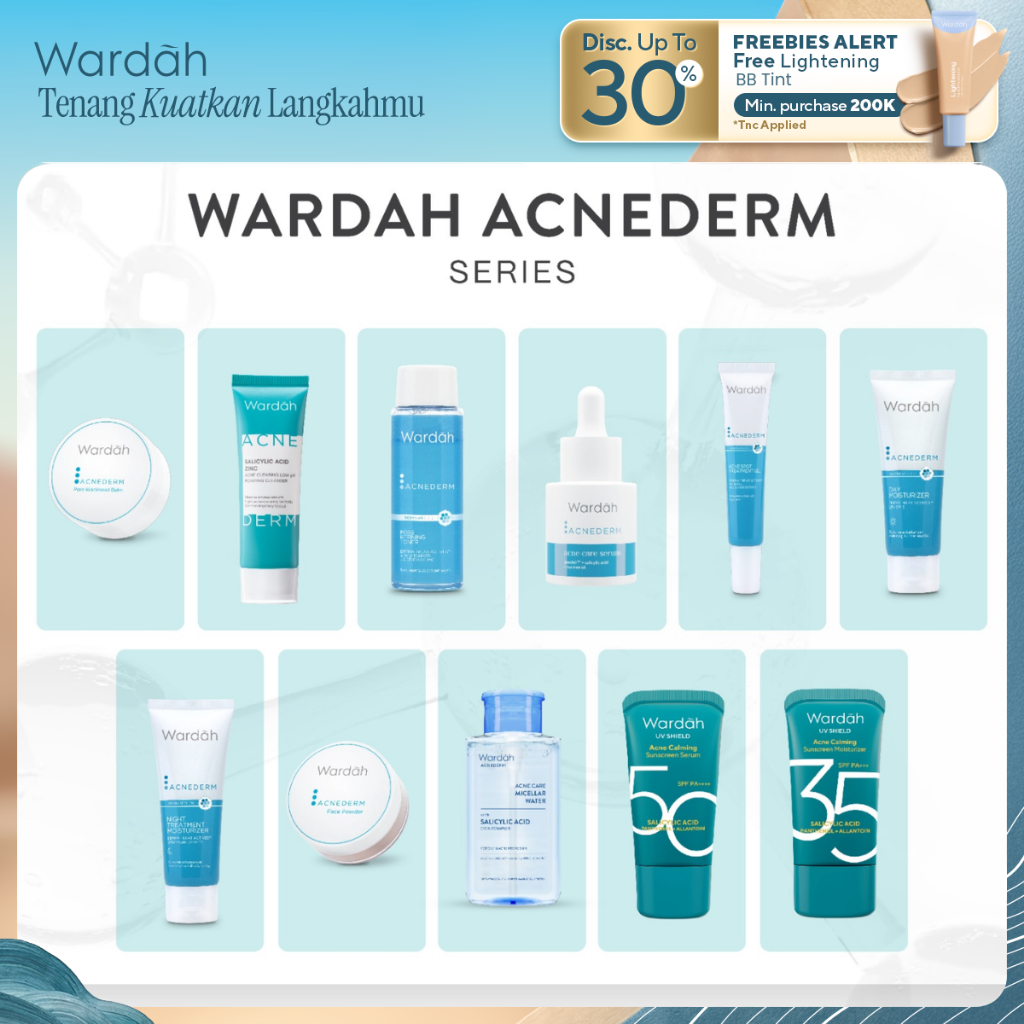 WARDAH Acnederm Acne Care All Series Lengkap - Balm, Salicylic Acid Zinc Acne Clearing Low pH Foaming Cleanser, Pore Refining Toner, Serum, Treatment Gel, Day Moisturizer, Night Treatment Moisturizer, Face Powder, Micellar Water, UV Shield - Skincare