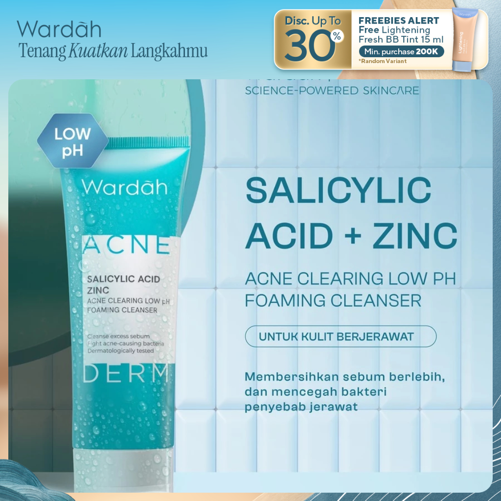 WARDAH Acnederm Salicylic Acid Zinc Acne Clearing Low pH Foaming Cleanser - Skincare