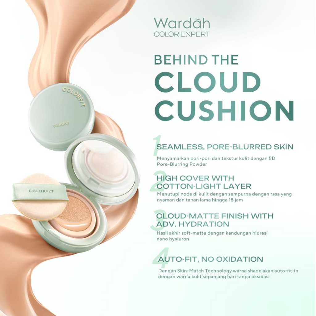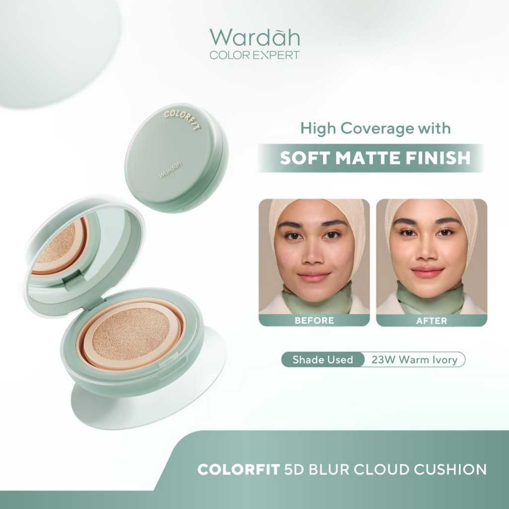 WARDAH Colorfit 5D Blur Cloud Cushion Matte Finish Tahan Lama Hingga 18 Jam - SPF 50 PA+, Nano-Hyaluron, dan CICA