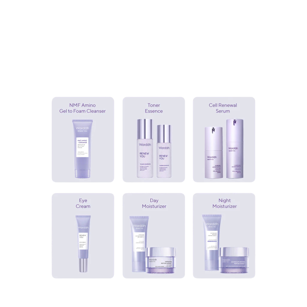 WARDAH Renew You Series Lengkap - Foam Cleanser, Toner Essence, Renewal Serum, Eye Cream, Day Moisturizer, Night Moisturizer - Skincare