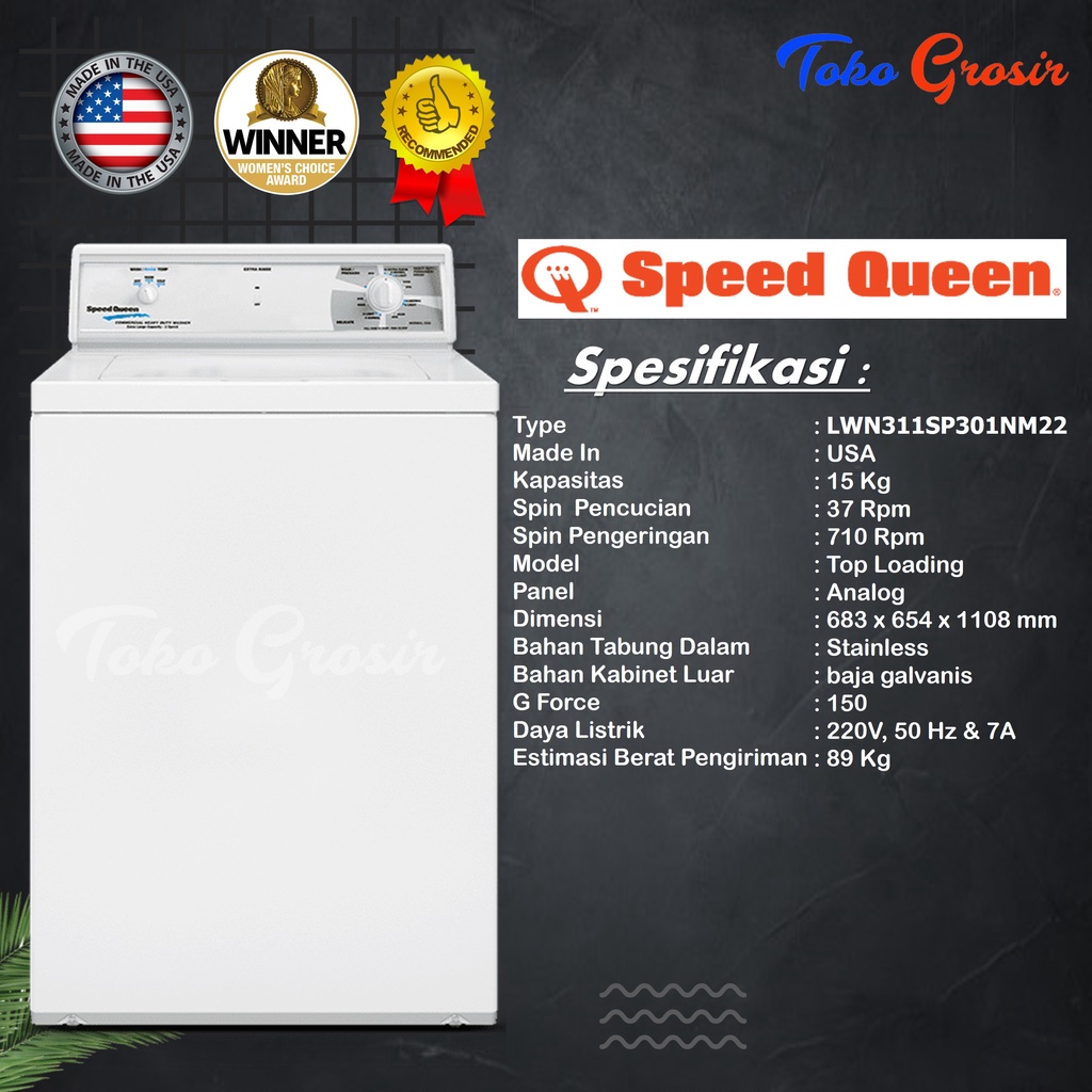 WASHER / MESIN CUCI LAUNDRY/ MESIN TOP LOADING SPEEDQUEEN KAPASITAS 15KG LWN311
