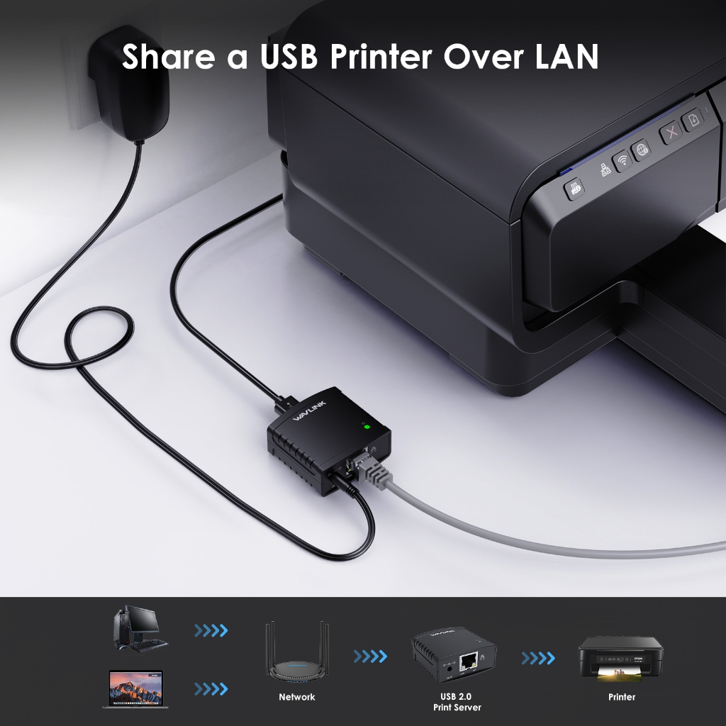 WAVLINK USB2.0 Wireless Print Server Wifi Dengan LAN Print Share Server untuk Printer USB