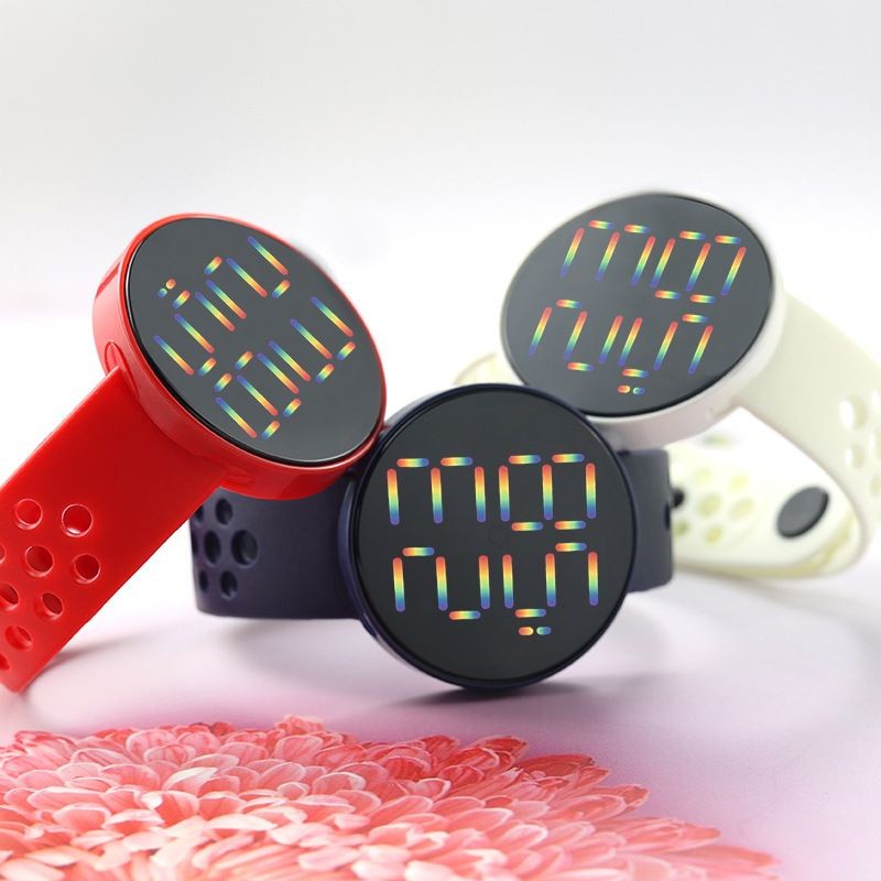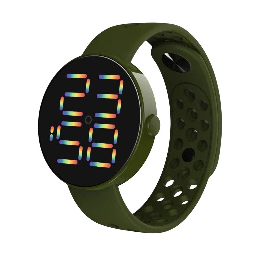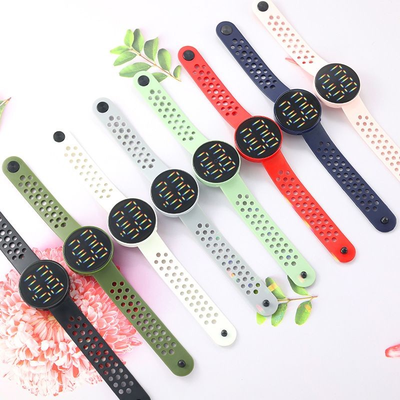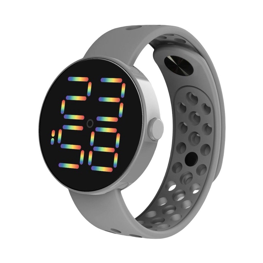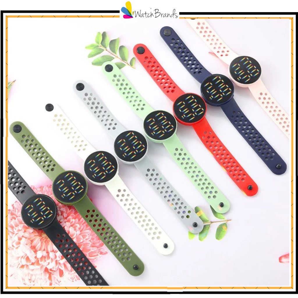 WBS Jam Tangan LED BULAT Digital Pria Wanita Rubber Electronic Fashion Model Smartwatch Couple Anak Remaja Premium motif Bolong RM005