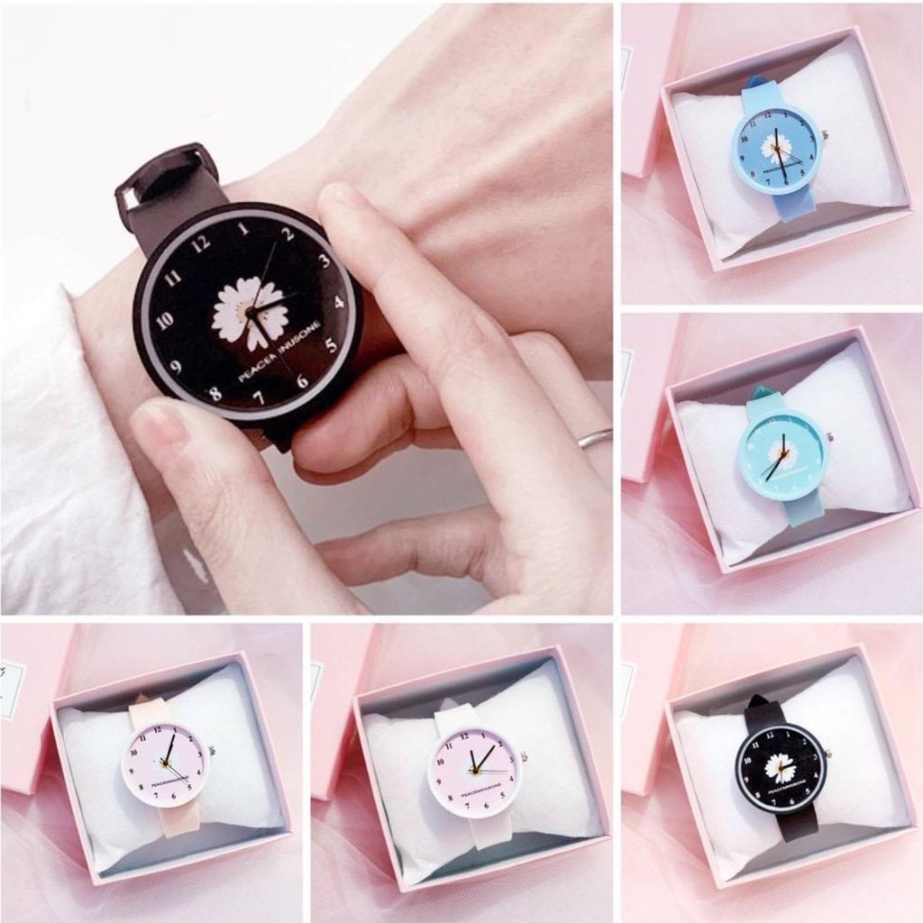 WBS Jam Tangan Quartz Analog Korea Motif Bunga Daisy Untuk Wanita Jam Tangan Bunga JF075