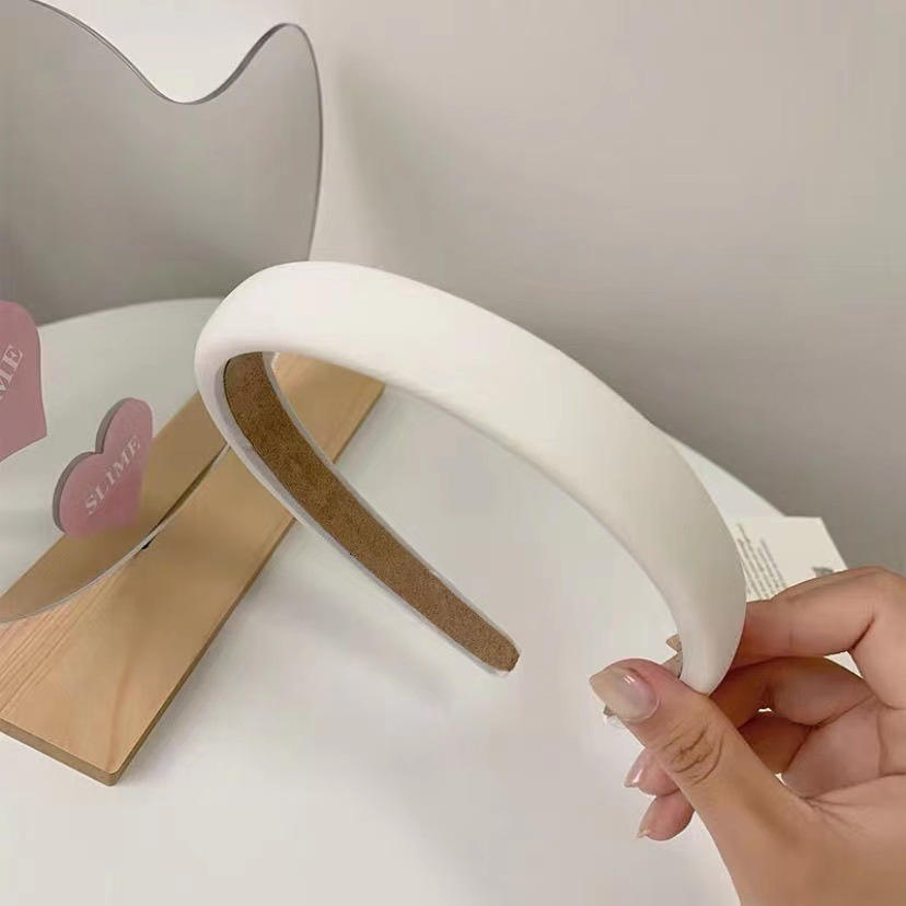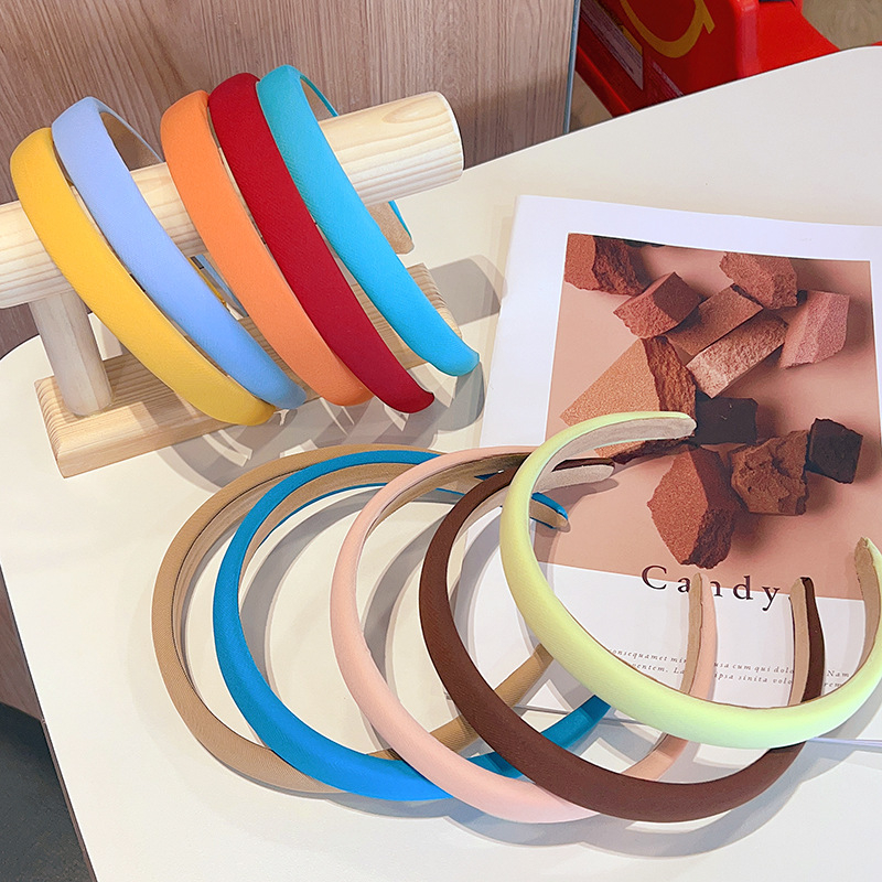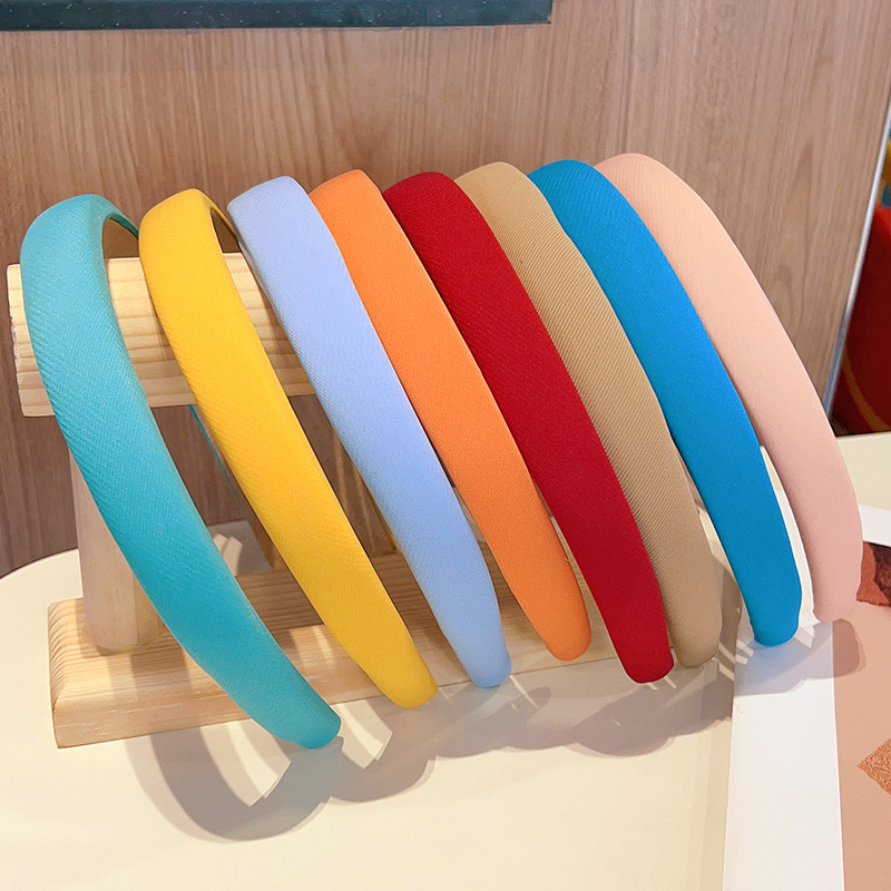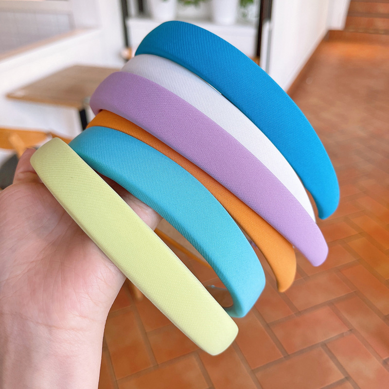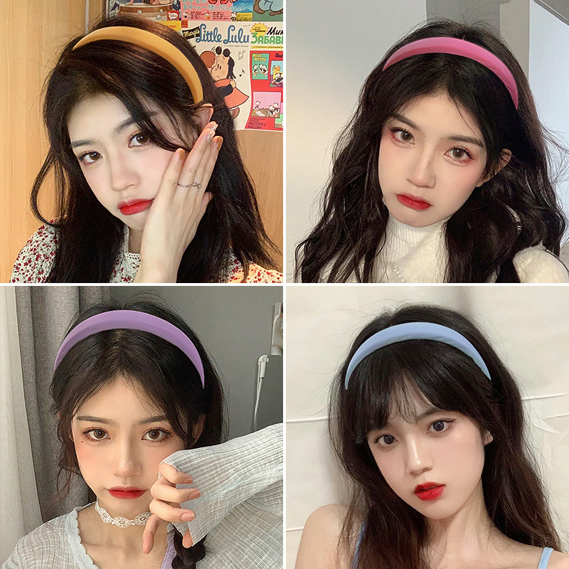 WD Bando Polos Wanita Bandana Headband Spons Lebar Gaya Korea Warna Warni Solid Non-Slip Import A4