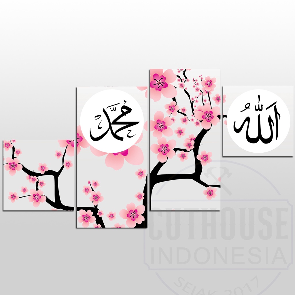 WDG044 Kolase Lafadz ALLAH dan Muhammad - Kaligrafi Islami Bunga Sakura