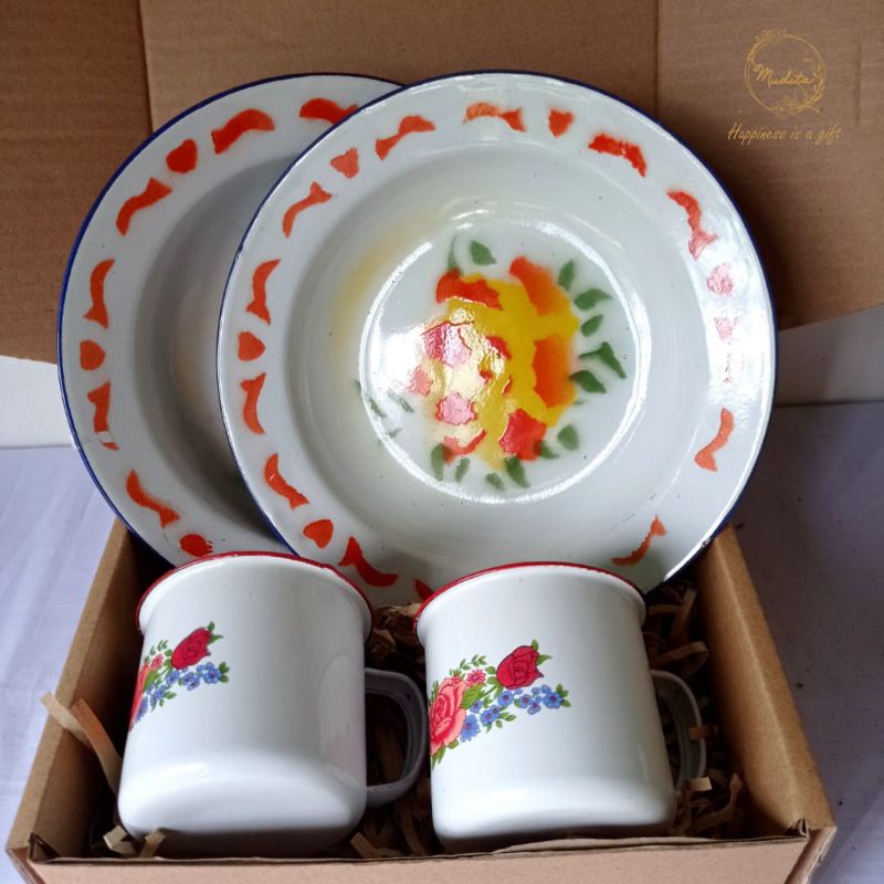 WEDDING HAMPERS/KADO NIKAH/KADO PIRING DAN GELAS ENAMEL COUPLE