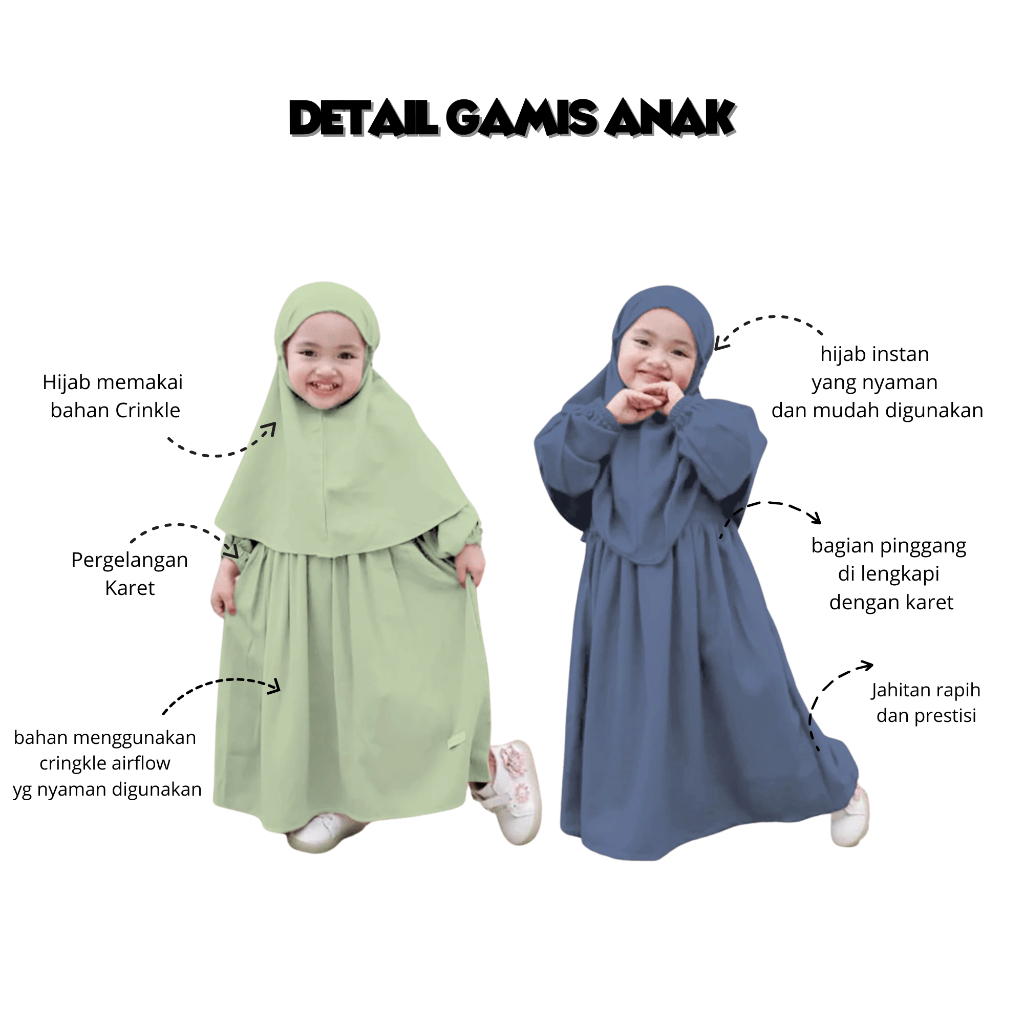 WEEGO - Gamis Crinkle Anak - Gamis Amelia Set Hijab Anak Kekinian Muslim Perempuan - K438