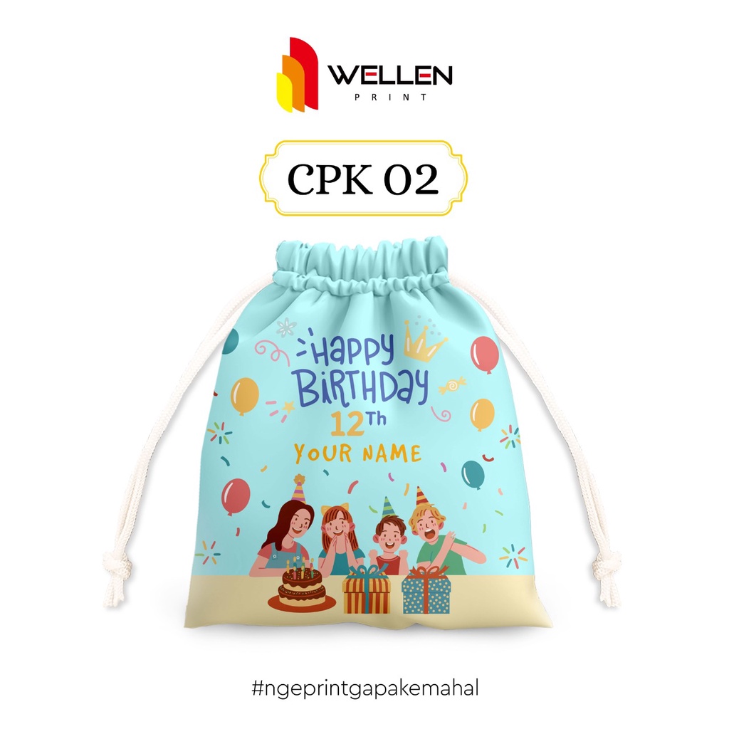 WELLEN PRINT - Pouch Serut Custom Print / Drawstring pouch / Pouch Souvenir packaging produk