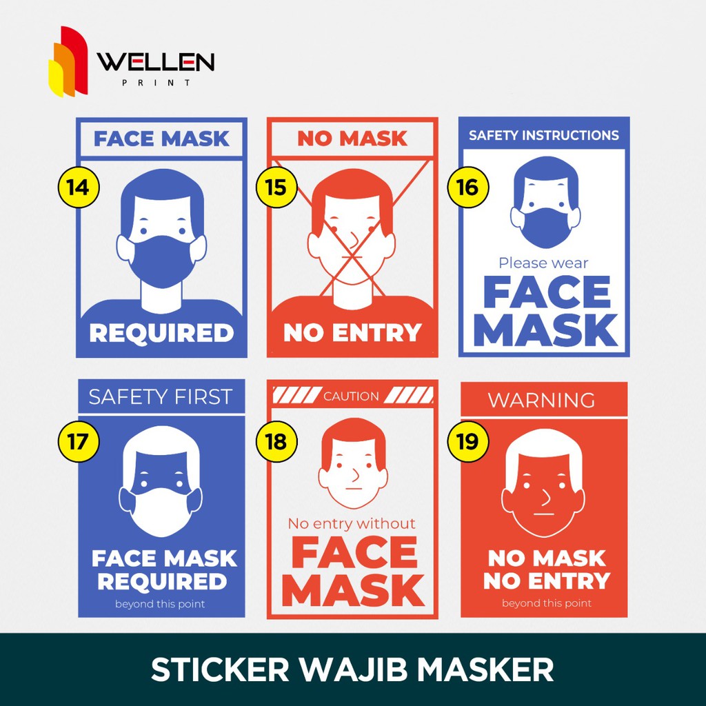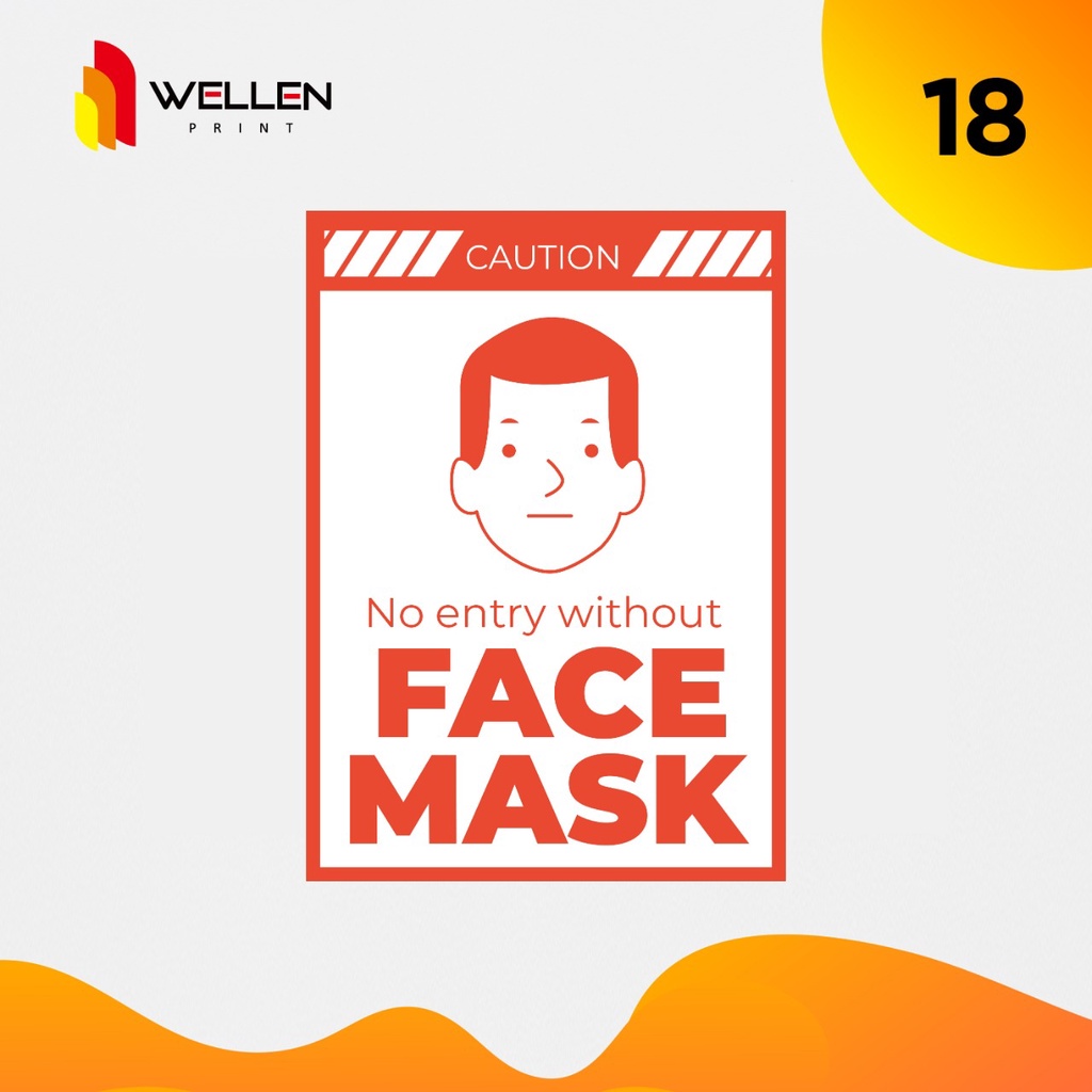 WELLEN PRINT - Sticker Tanda Peringatan Wajib Menggunakan Masker untuk Supermarket Tempat Ibadah dan Tempat Umum 03