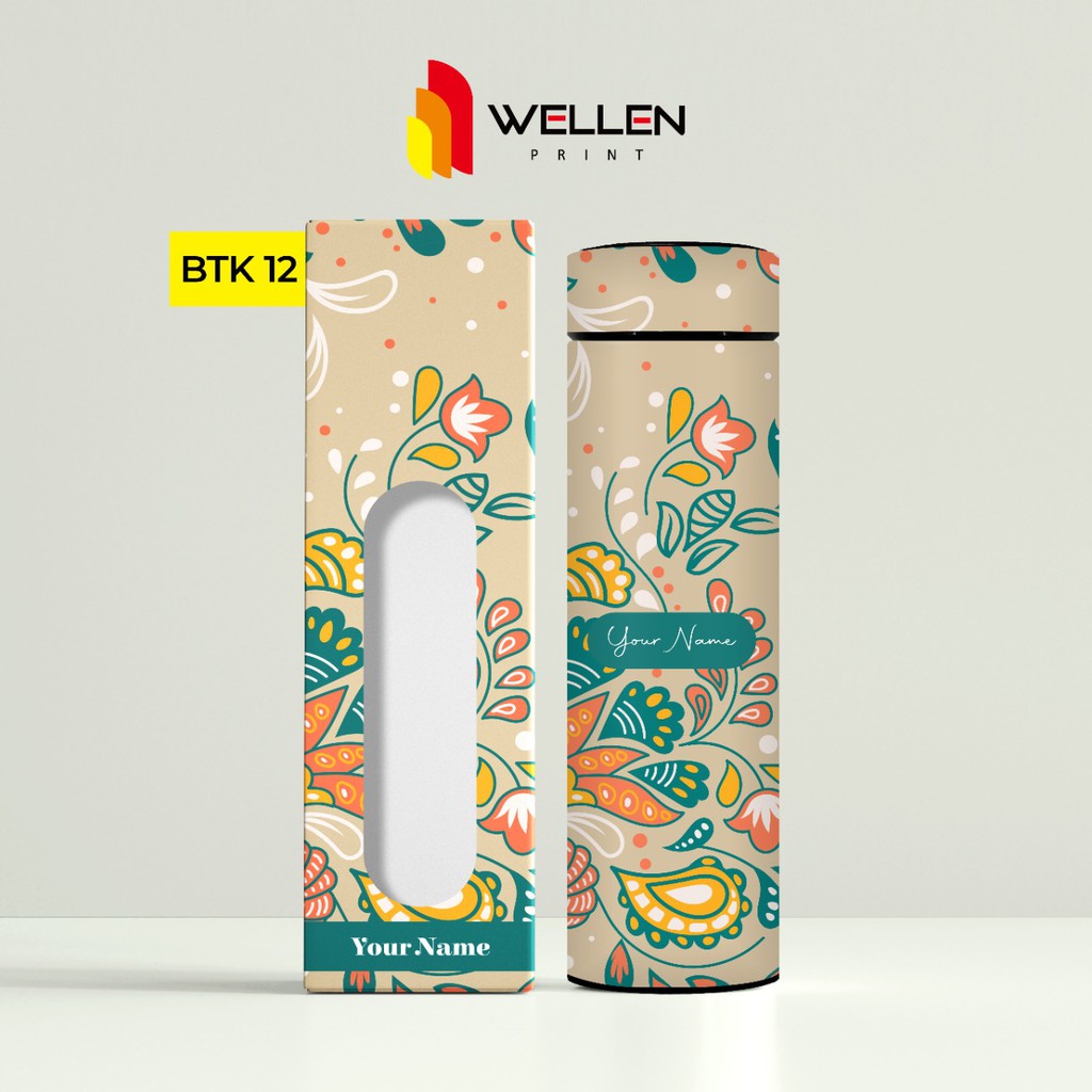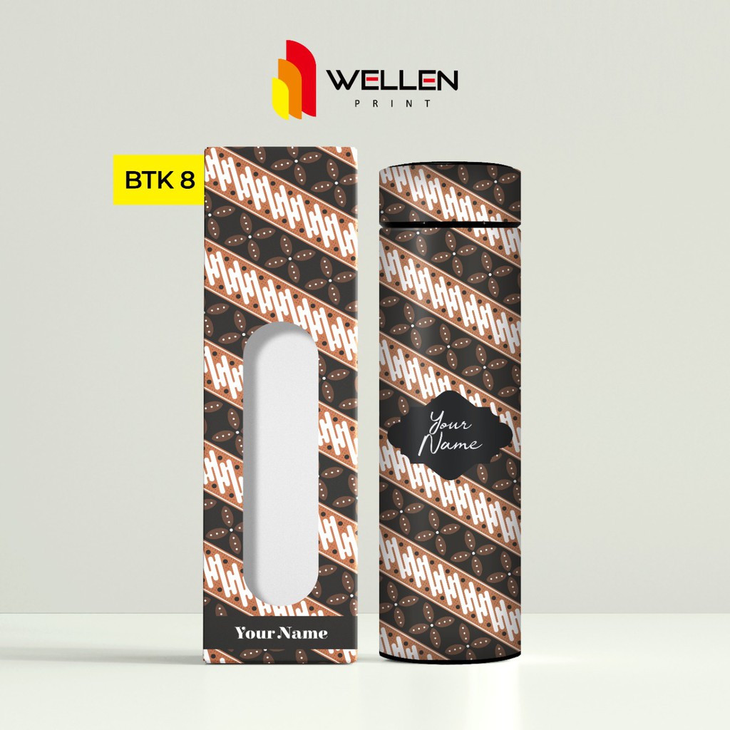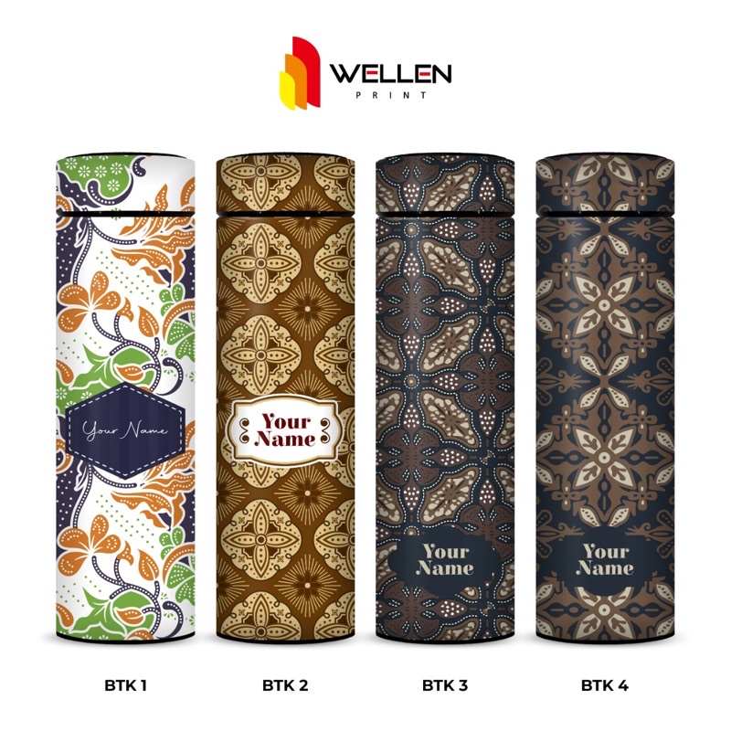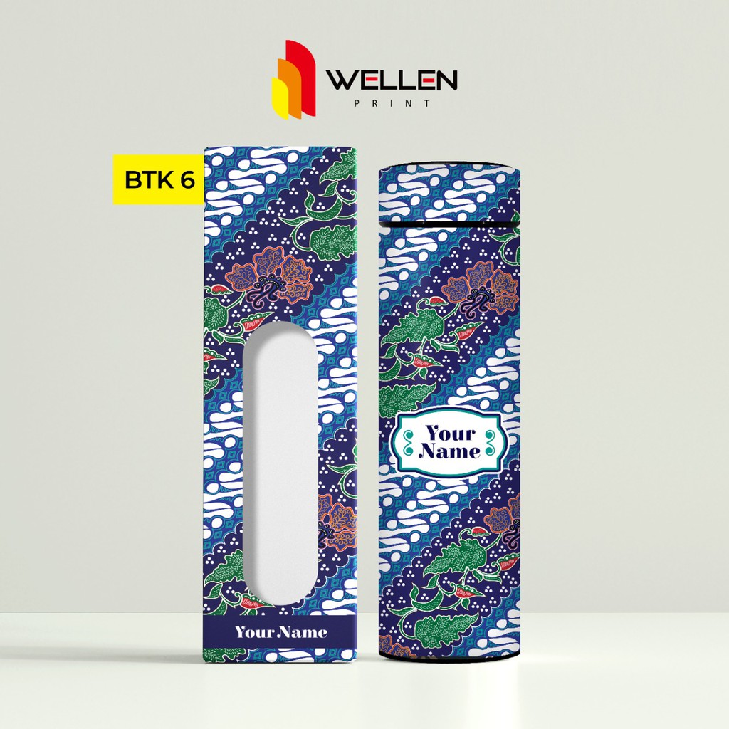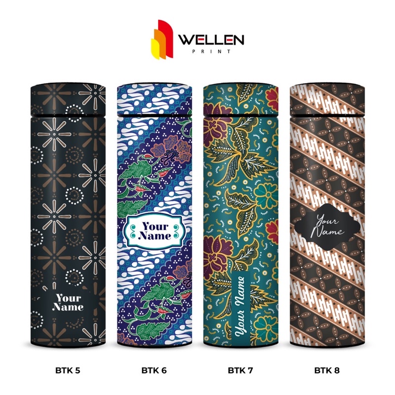 WELLEN PRINT - Tumbler Sakura Print UV Motif Batik Indonesia / Cetak Souvenir Termos Botol Minum Custom Nama