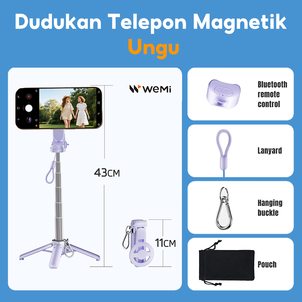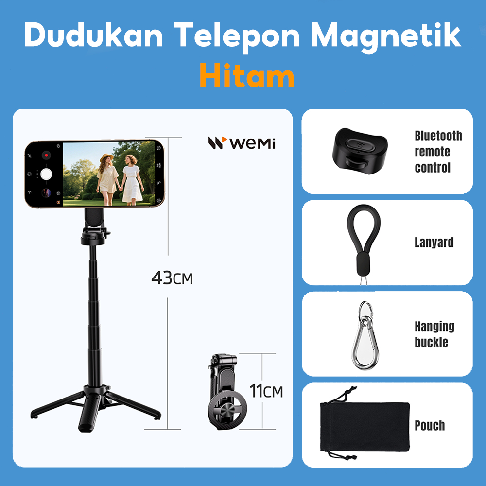 WEMI M2-C 3in1 Magnetic Mini Tripod Selfie Stick Kamera HP With Remote Bluetooth Monopod Portable Tongsis Untuk Hand Phone/tripod konten kreator bisa gerak