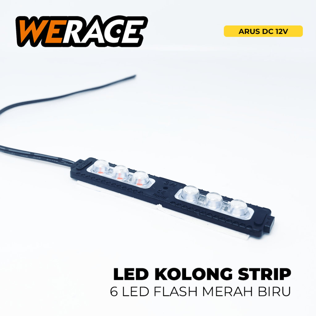 WERACE Lampu Modul LED Kolong Strip 6 Mata Pisah 12V Merah Biru Kedip Flash Variasi 3Watt Body Hitam