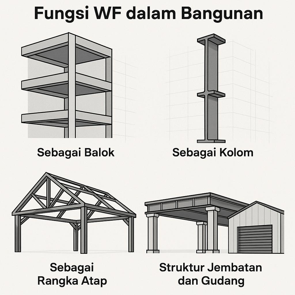 WF 500x200 / 400x200 / 350x175 / 300x150 / 250x125 / 200x100 / 100x50 Wide Flange Beams Besi Baja Konstruksi Bangunan Ukuran Lengkap