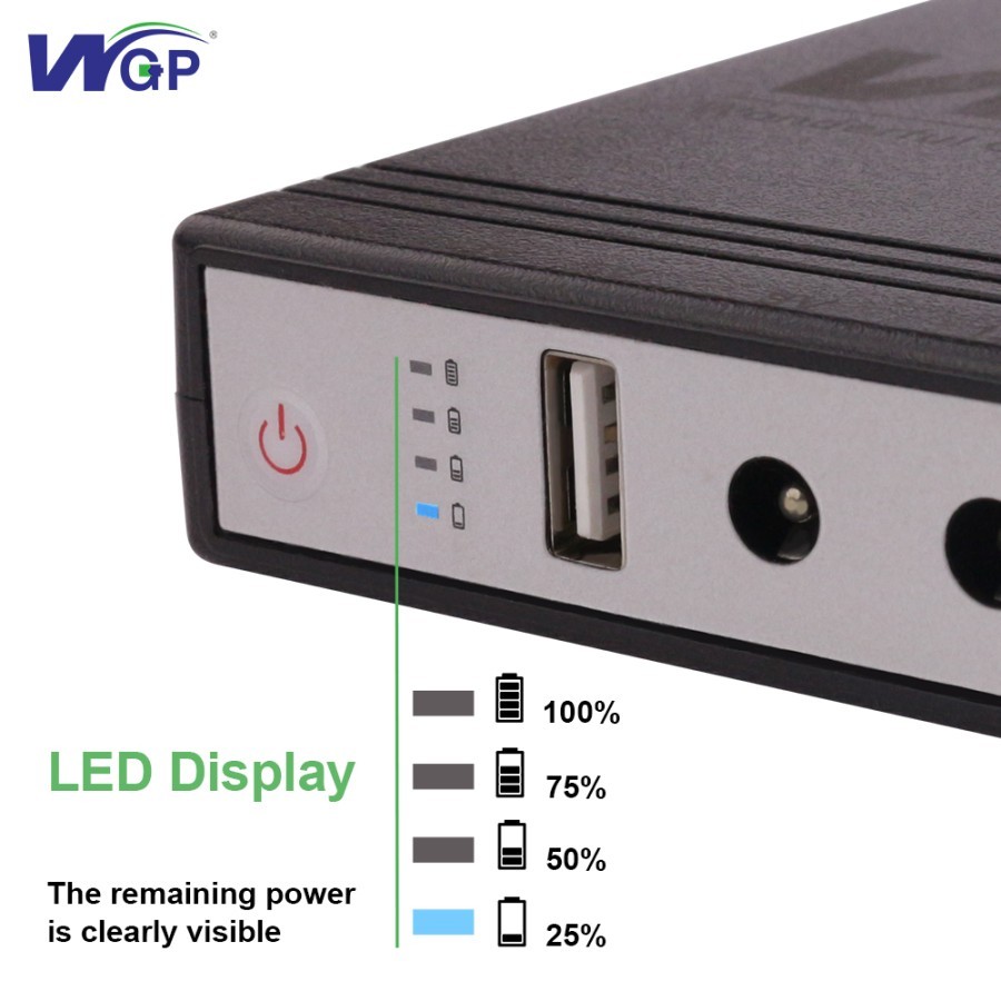WGP Mini UPS Travel Adaptor Untuk Backup CCTV Modem Router Include Battery 10400 mAh | Output DC 12V & 5V
