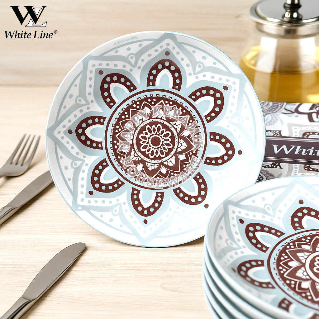 WHITE LINE [1PCS] Piring Keramik 8In LORETA Piring Dalam Piring Sayur Keramik Aesthetic Keramik 20cm