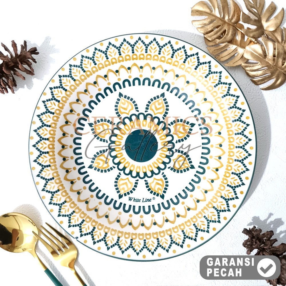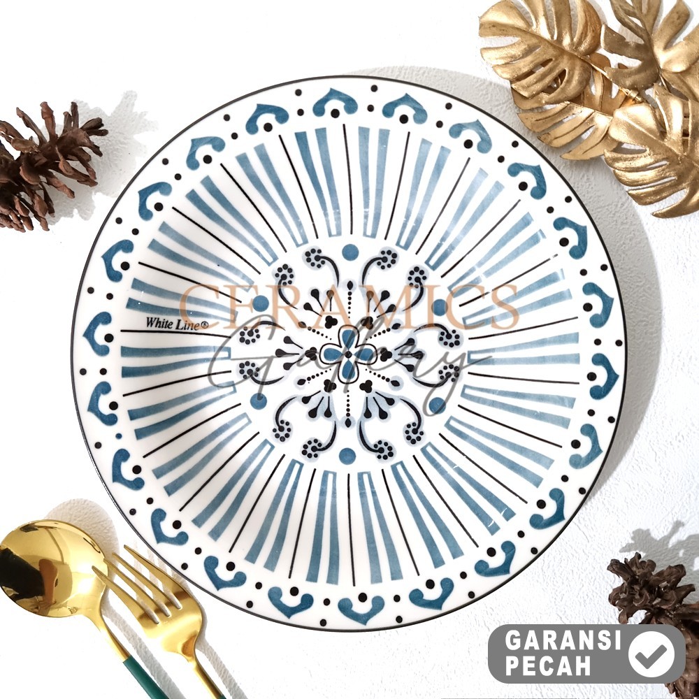 WHITE LINE 1pcs Dinner Plate 9,25in / 8in Piring Buah Piring Cekung Piring Makan Aesthetic