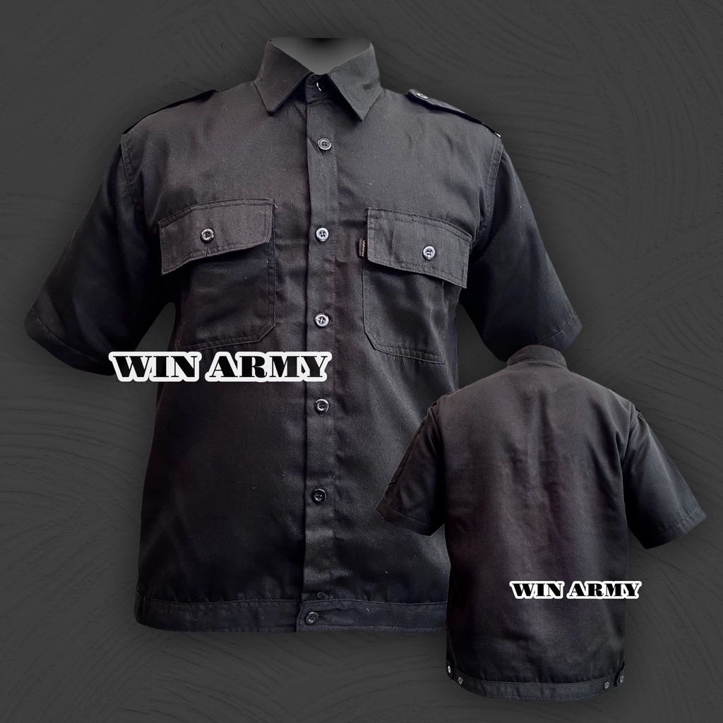 WIN Baju Kemeja Pria Kasual Polos Hitam Putih Lengan Panjang / hem baju pria / kemeja cowok Terbaru