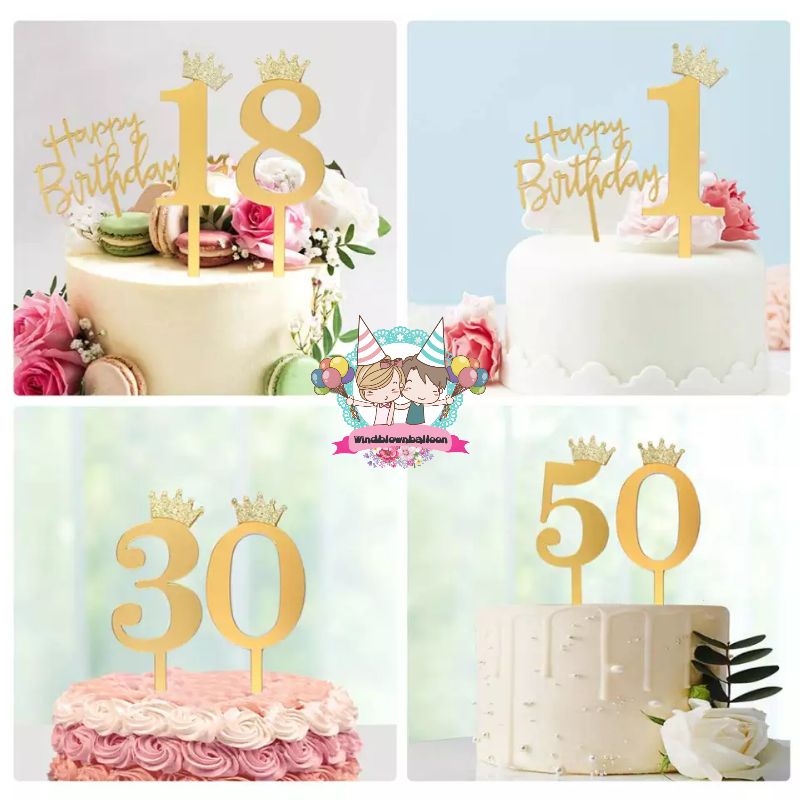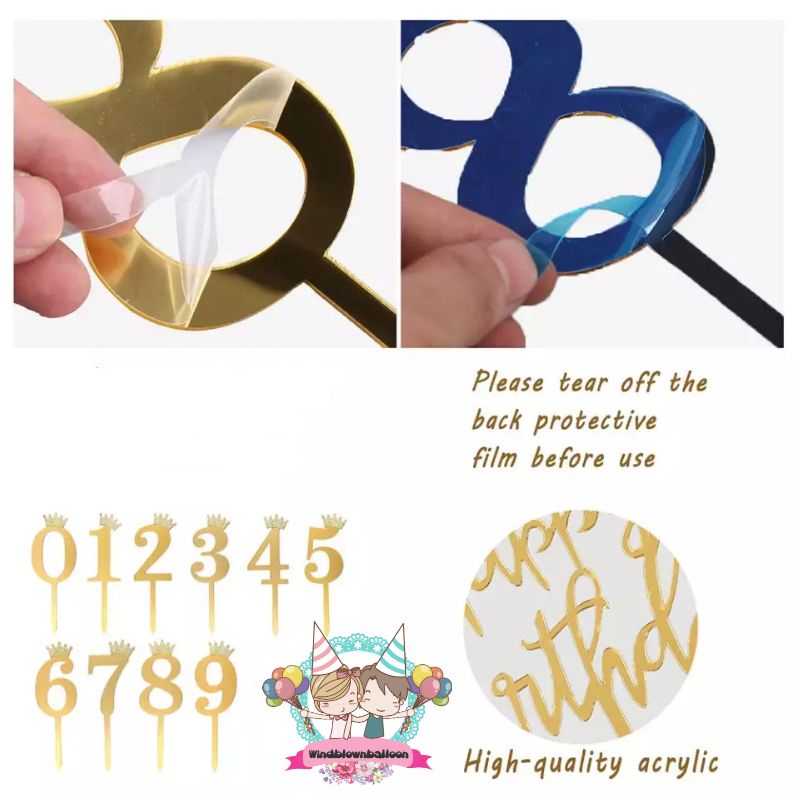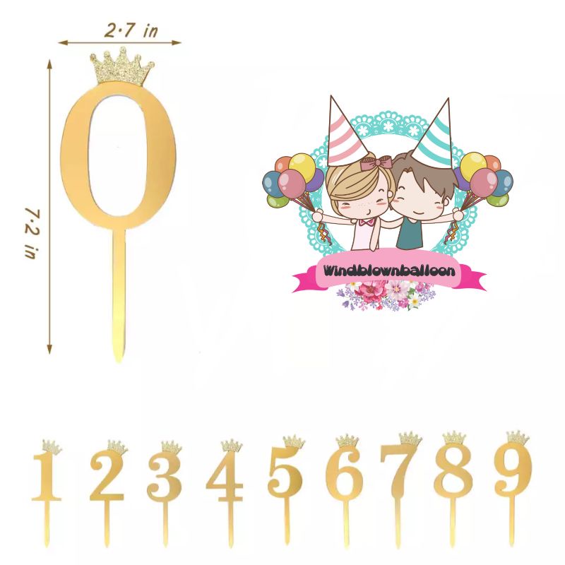WINDBLOWN BALON CAKE TOPPER AKRILIK ANGKA / HIASAN KUE ULTAH USIA BIRTHDAY HBD ULANG TAHUN KEREN